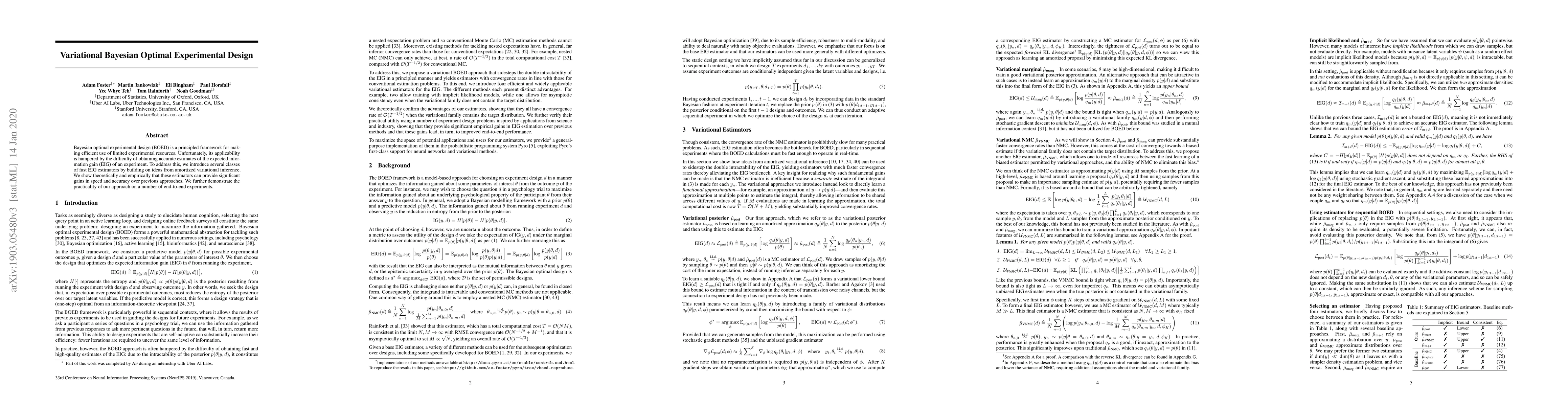 This paper introduces fast estimators for Bayesian optimal experimental design (BOED) using variational inference techniques, significantly improving both speed and accuracy of estimating expected information gain (EIG) compared to previous methods, and demonstrating practical effectiveness through various experiments.