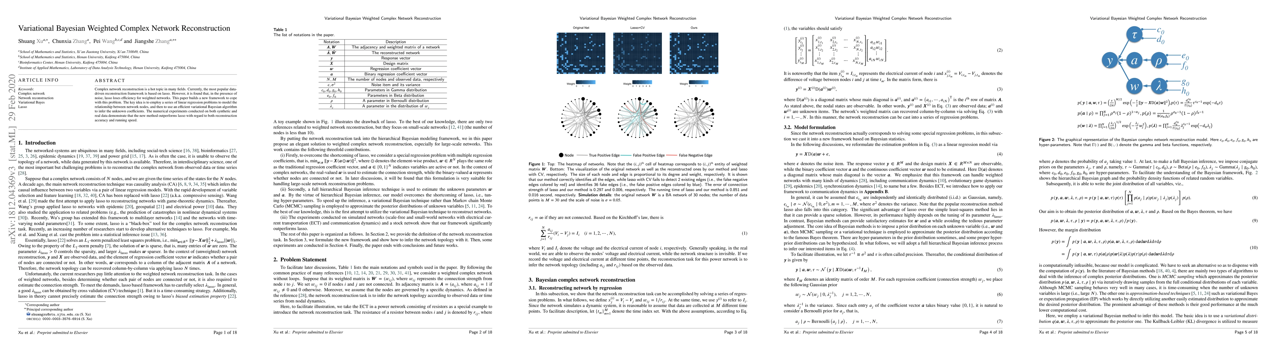 Complex network reconstruction is a hot topic in many fields. Currently, the most popular data-driven reconstruction framework is based on lasso. However, it is found that, in the presence of noise, lasso loses efficiency for weighted networks. This paper builds a new framework to cope with this problem. The key idea is to employ a series of linear regression problems to model the relationship between network nodes, and then to use an efficient variational Bayesian algorithm to infer the unknown coefficients. The numerical experiments conducted on both synthetic and real data demonstrate that the new method outperforms lasso with regard to both reconstruction accuracy and running speed.