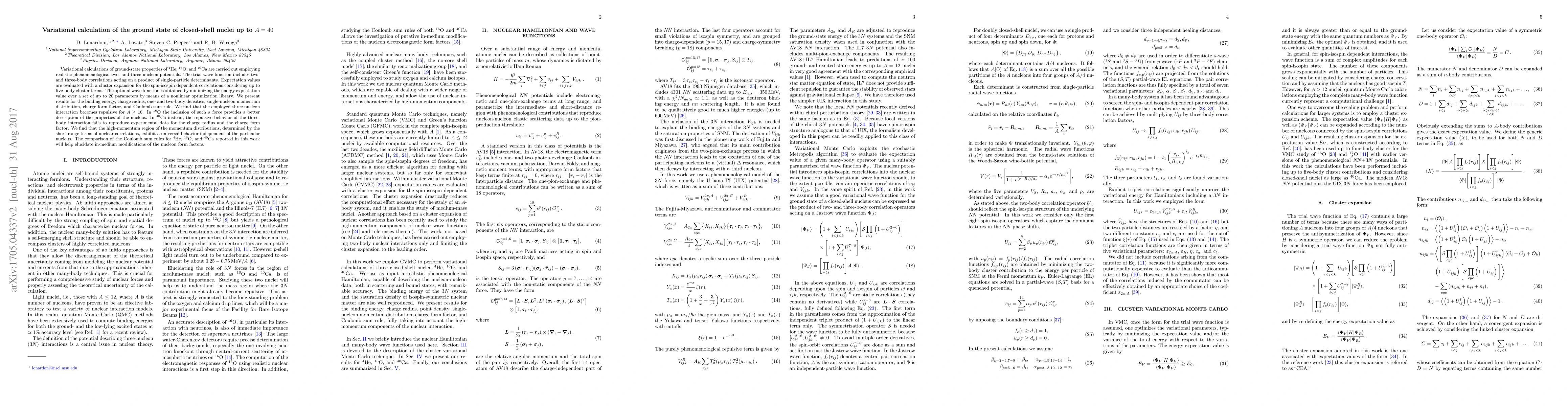 This research paper details variational calculations of ground-state properties for helium-4, oxygen-16, and calcium-40 nuclei using realistic phenomenological two- and three-nucleon potentials. The study finds that while three-nucleon interactions improve oxygen-16 description, they fail for calcium-40's charge radius and form factor. It also reveals a universal behavior in high-momentum regions of momentum distributions and discusses implications for understanding nucleon form factor modifications in nuclear medium.