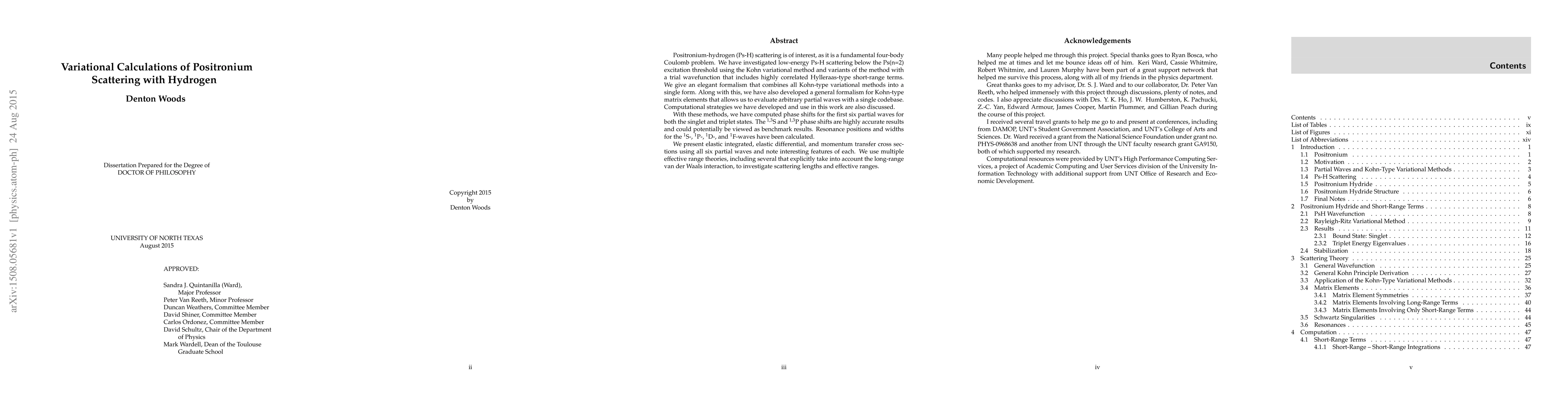 This paper investigates low-energy positronium-hydrogen scattering using the Kohn variational method, yielding highly accurate phase shifts and cross sections for various partial waves. The study also develops a unified formalism for Kohn-type variational methods and provides benchmark results for scattering parameters.