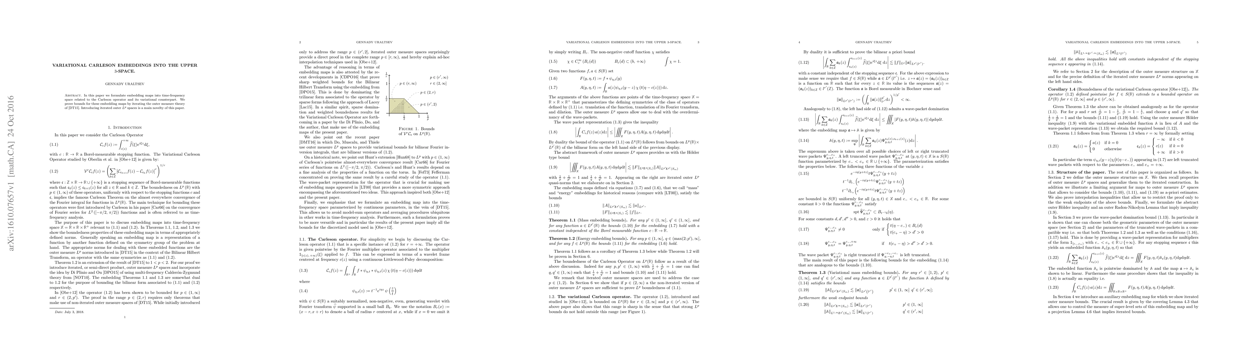 In this paper we formulate embedding maps into time-frequency space related to the Carleson operator and its variational counterpart. We prove bounds for these embedding maps by iterating the outer measure theory of [DT15]. Introducing iterated outer $L^p$ spaces is a main novelty of this paper. [DT15] Yen Do and Christoph Thiele. "$L^p$ theory for outer measures and two themes of Lennart Carleson united". In: Bulletin of the American Mathematical Society 52.2 (2015), pp. 249-296.