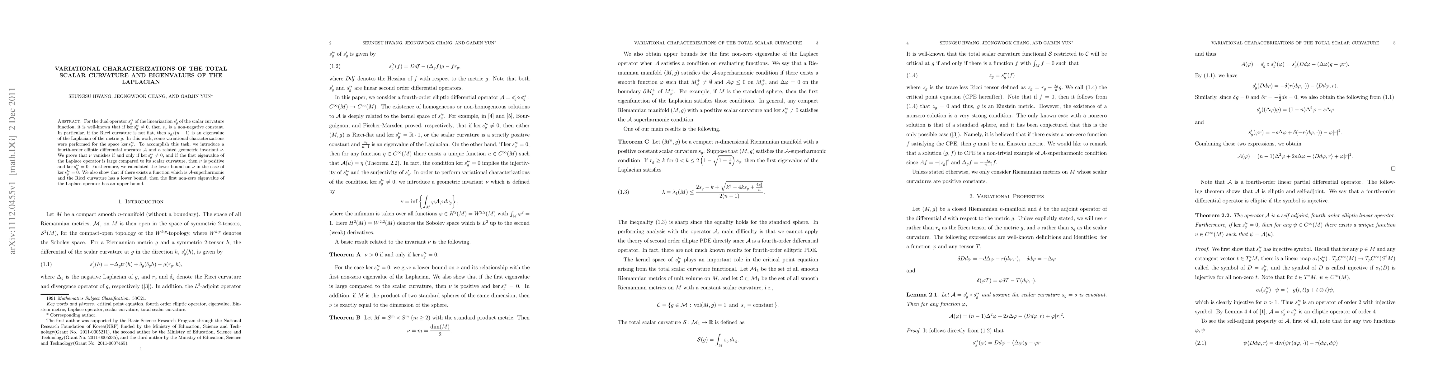 For the dual operator $s_g'^*$ of the linearization $s_g'$ of the scalar curvature function, it is well-known that if $\ker s_g'^*\neq 0$, then $s_g$ is a non-negative constant. In particular, if the Ricci curvature is not flat, then $ {s_g}/(n-1)$ is an eigenvalue of the Laplacian of the metric $g$. In this work, some variational characterizations were performed for the space $\ker s_g'^*$. To accomplish this task, we introduce a fourth-order elliptic differential operator $\mathcal A$ and a related geometric invariant $\nu$. We prove that $\nu$ vanishes if and only if $\ker s_g'^* \ne 0$, and if the first eigenvalue of the Laplace operator is large compared to its scalar curvature, then $\nu$ is positive and $\ker s_g'^*= 0$. Furthermore, we calculated the lower bound on $\nu$ in the case of $\ker s_g'^* = 0$. We also show that if there exists a function which is $\mathcal A$-superharmonic and the Ricci curvature has a lower bound, then the first non-zero eigenvalue of the Laplace operator has an upper bound.