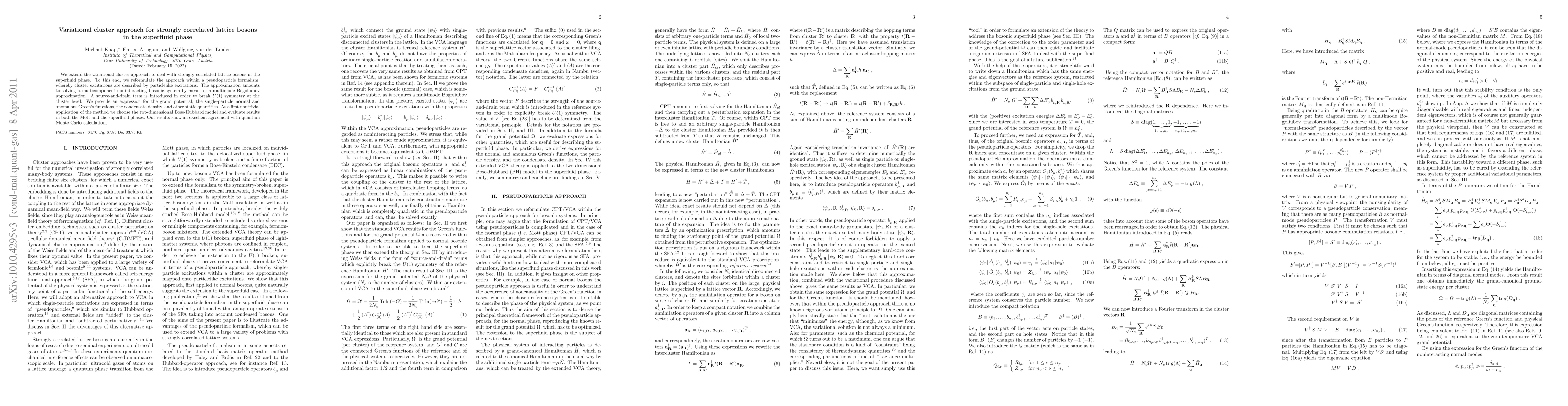 This paper extends the variational cluster approach to study strongly correlated lattice bosons in the superfluid phase using a pseudoparticle formalism. The method is applied to the two-dimensional Bose-Hubbard model, showing agreement with quantum Monte Carlo calculations and providing insights into the superfluid phase.