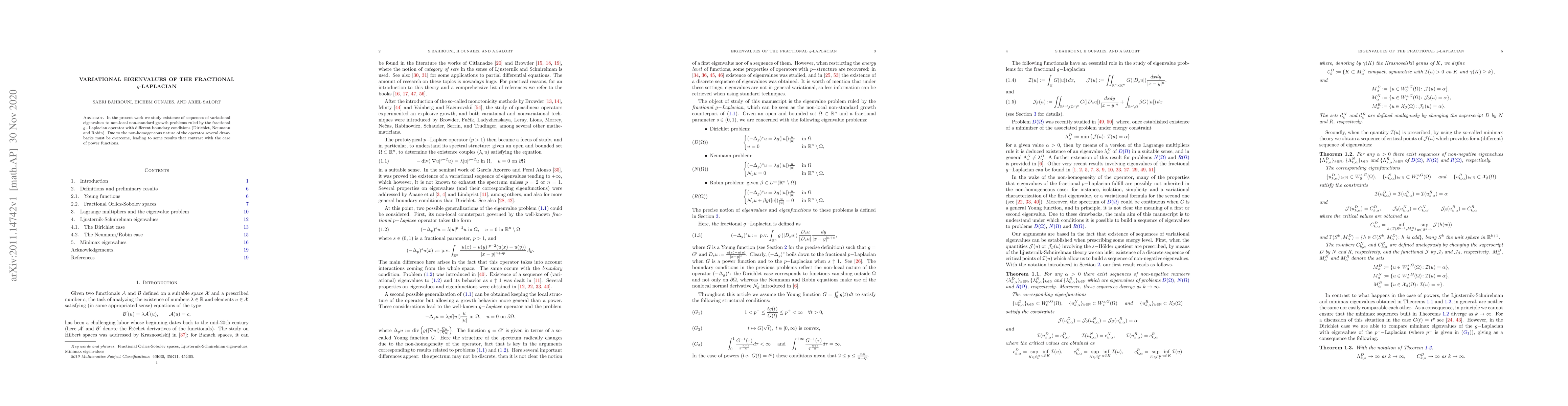 The main technical contribution of this research is the development of a new analytical framework for studying the eigenvalues of the fractional g-Laplacian.