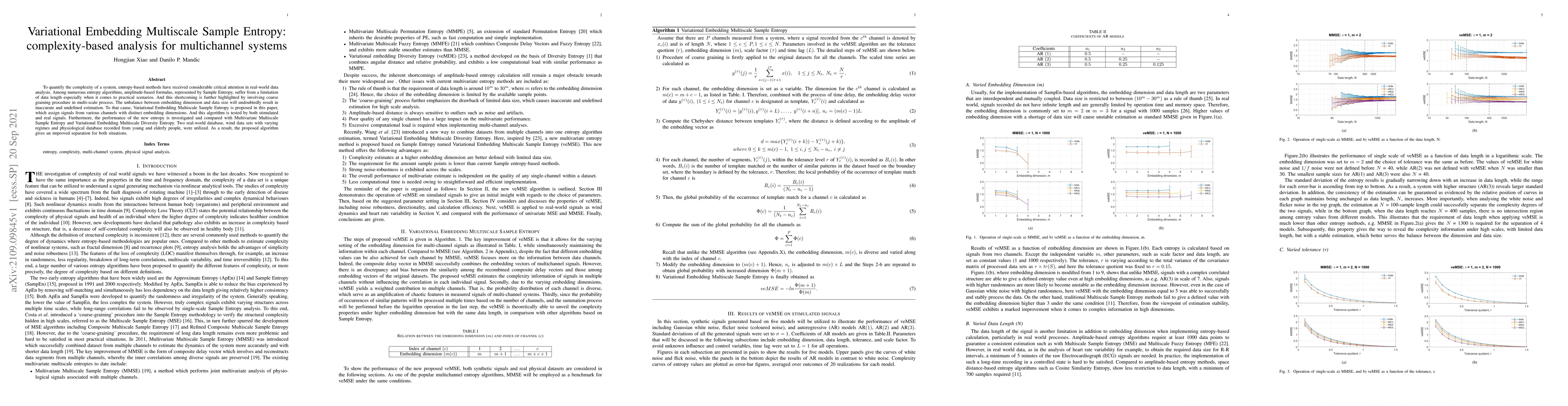 This paper introduces Variational Embedding Multiscale Sample Entropy to quantify system complexity, addressing the limitations of traditional Sample Entropy in data length and multiscale analysis. The proposed method assigns distinct embedding dimensions to signals from various channels, demonstrating improved performance over existing methods in analyzing real-world datasets like wind and physiological data.