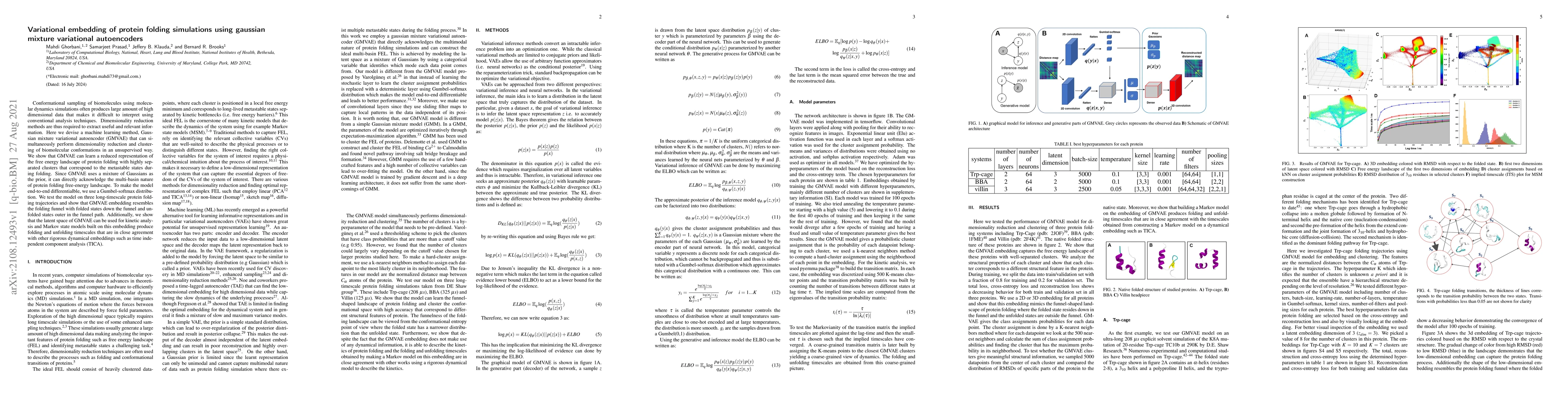 This paper introduces a Gaussian mixture variational autoencoder (GMVAE) to reduce the dimensionality of high-dimensional protein folding simulation data and cluster biomolecular conformations. The GMVAE model, using a mixture of Gaussians and a Gumbel-softmax distribution, effectively captures the multi-basin nature of protein folding and accurately represents the folding funnel, aiding in kinetic analysis and producing folding timescales consistent with other methods.