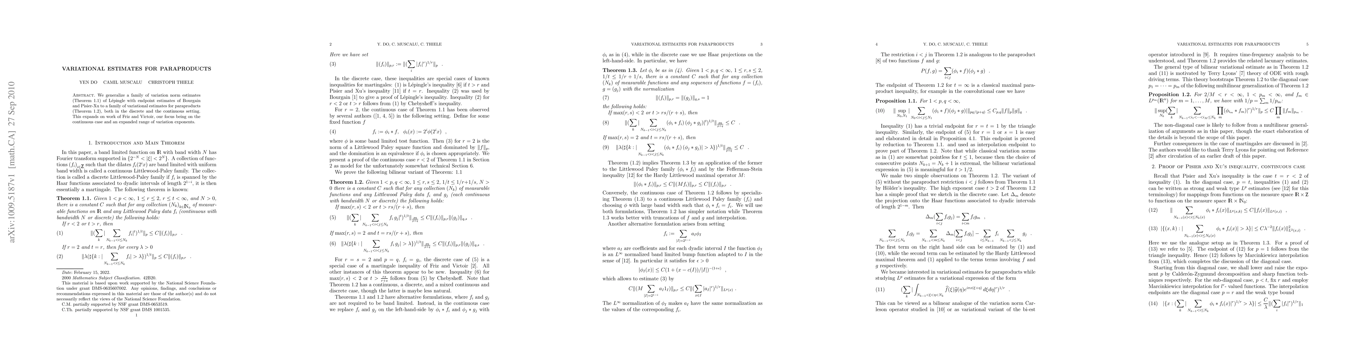 This paper generalizes variational norm estimates for paraproducts, extending the work of Lepingle, Bourgain, and Pisier-Xu to both discrete and continuous settings, with a particular focus on the continuous case and a broader range of variation exponents.
