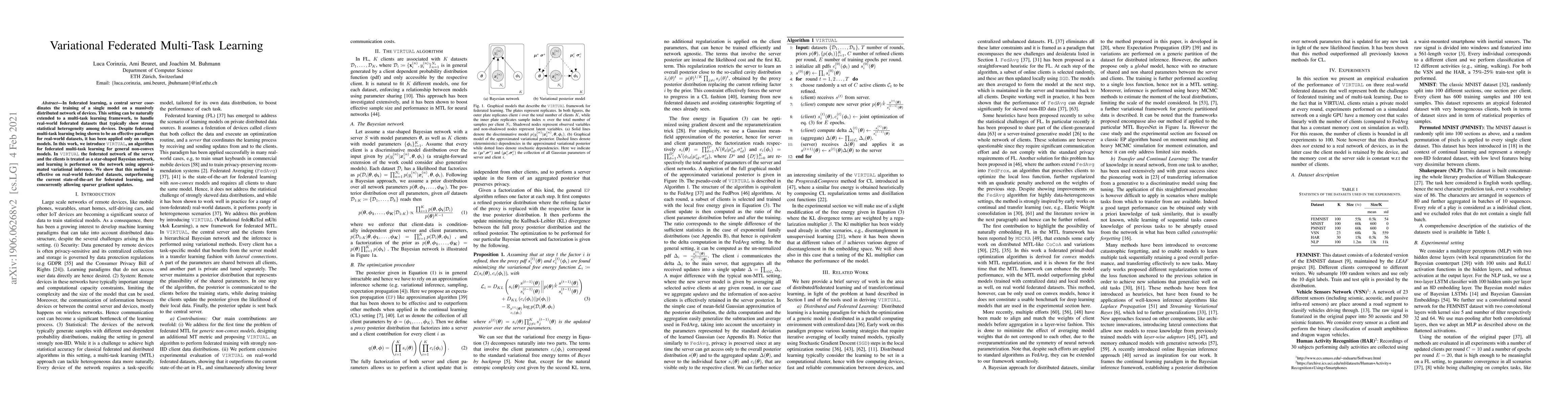 This paper introduces VIRTUAL, a variational federated multi-task learning algorithm for non-convex models, treating the network as a Bayesian star-shaped network and employing variational inference. It demonstrates superior performance on real-world datasets compared to existing methods, while also enabling sparser gradient updates.
