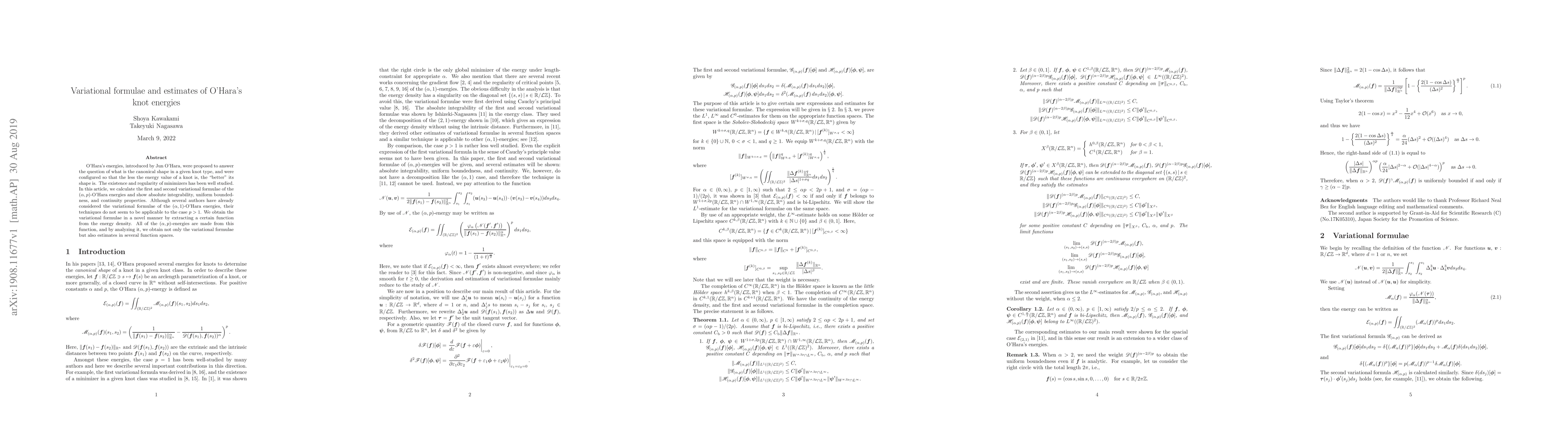Researchers calculated variational formulae for O'Hara's knot energies, showing absolute integrability and continuity properties, which aids in understanding the canonical shape of a given knot type.