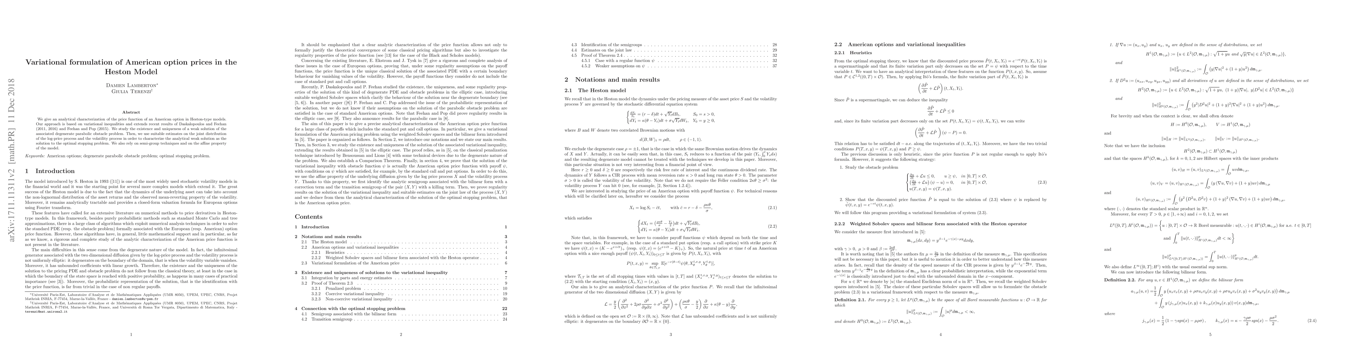 This research presents an analytical method using variational inequalities to characterize American option pricing in Heston-type models. It establishes existence, uniqueness of a weak solution for an obstacle problem, and links it to an optimal stopping problem, supported by semi-group techniques and affine model properties.