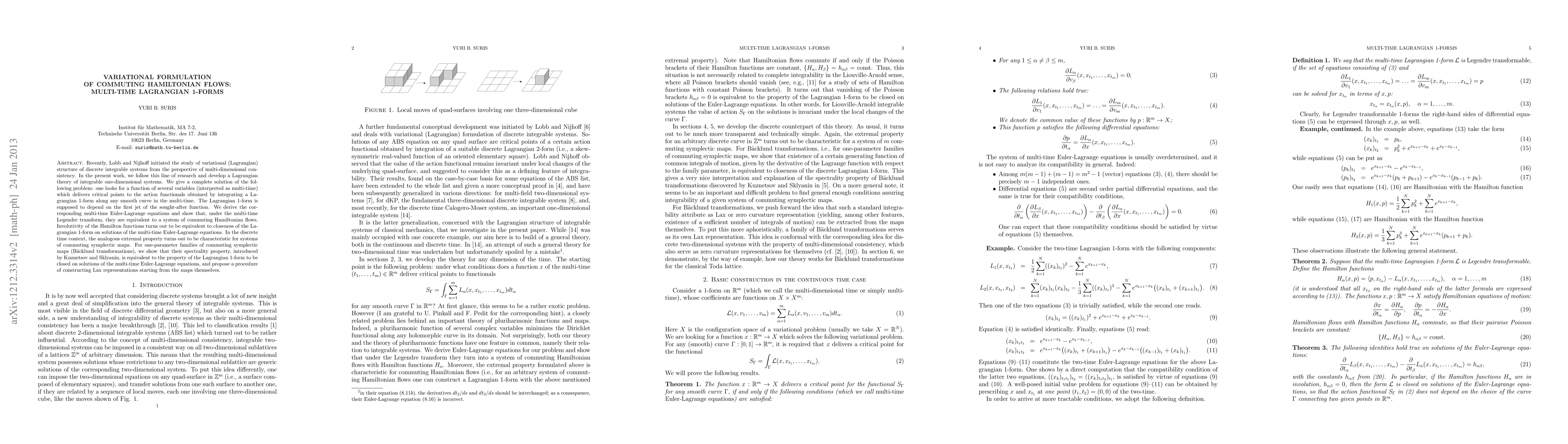 The paper presents a variational formulation of commuting Hamiltonian flows using multi-time Lagrangian 1-forms, linking their involutivity to the closure of the Lagrangian 1-form on solutions.