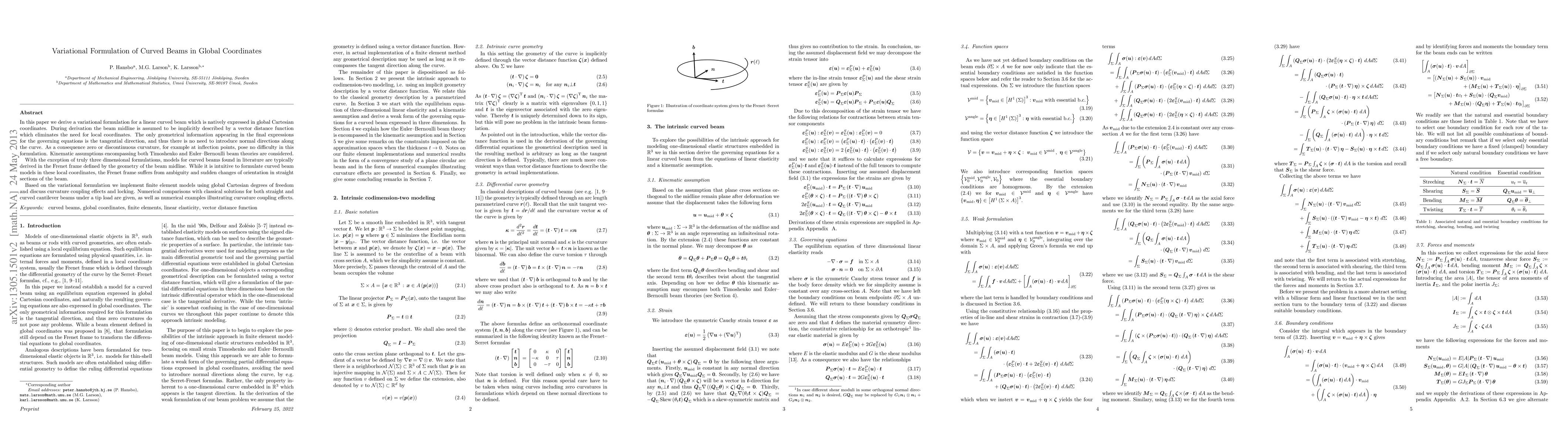 Researchers develop a new method for modeling curved beams in global Cartesian coordinates, eliminating need for local Frenet frame, allowing for more accurate simulations of beam behavior under various loads.