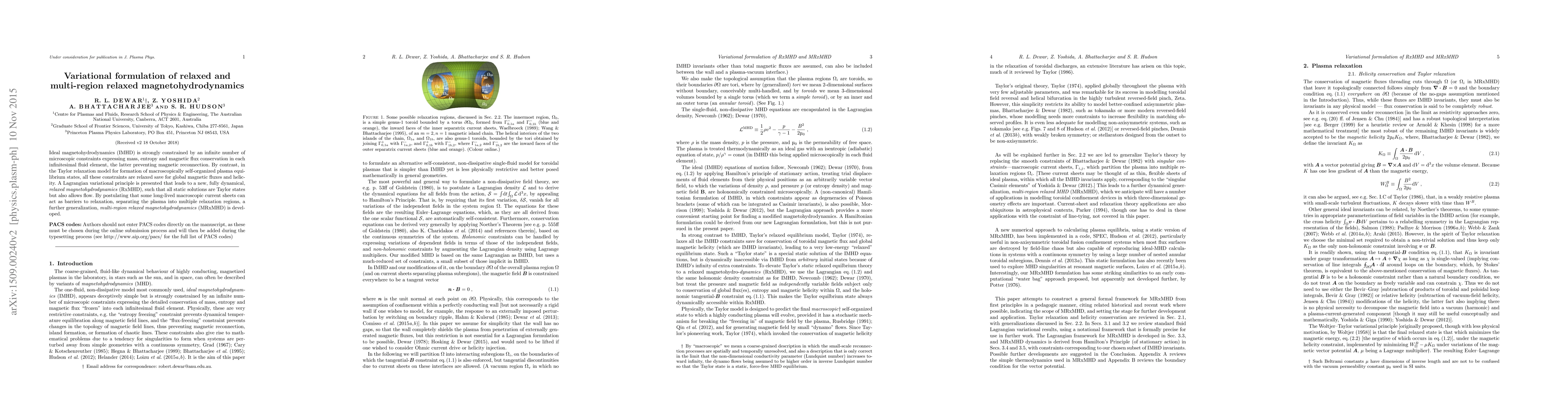 This paper introduces a variational formulation for relaxed magnetohydrodynamics (RxMHD) that allows for dynamic flow while maintaining Taylor relaxation principles, and extends it to multi-region relaxed magnetohydrodynamics (MRxMHD) to account for current sheets that separate plasma into distinct relaxation regions.
