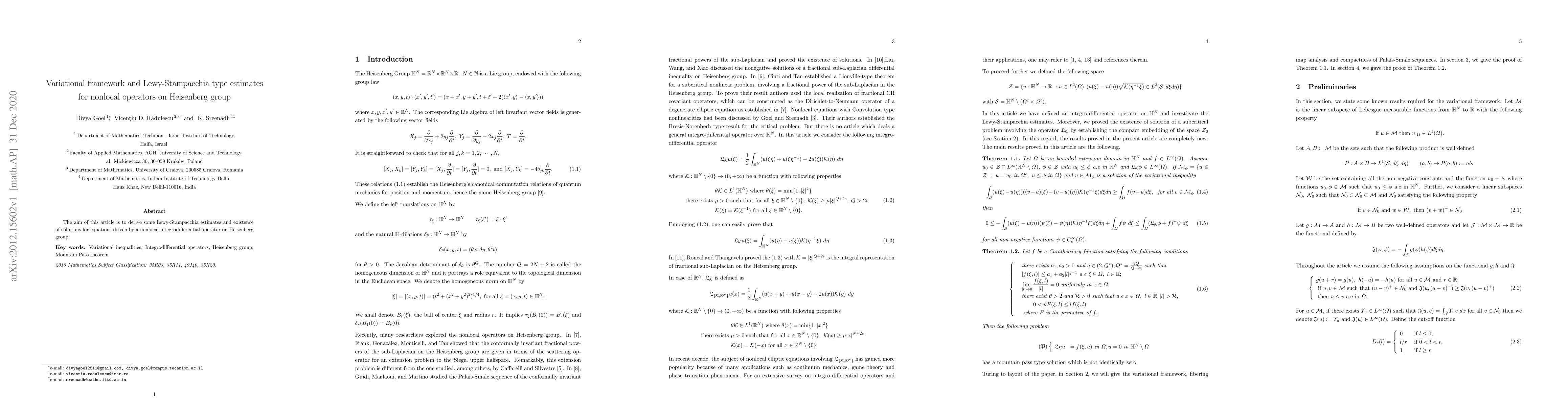 This research establishes Lewy-Stampacchia estimates and proves existence of solutions for equations involving a nonlocal integro-differential operator on the Heisenberg group, utilizing a variational framework.