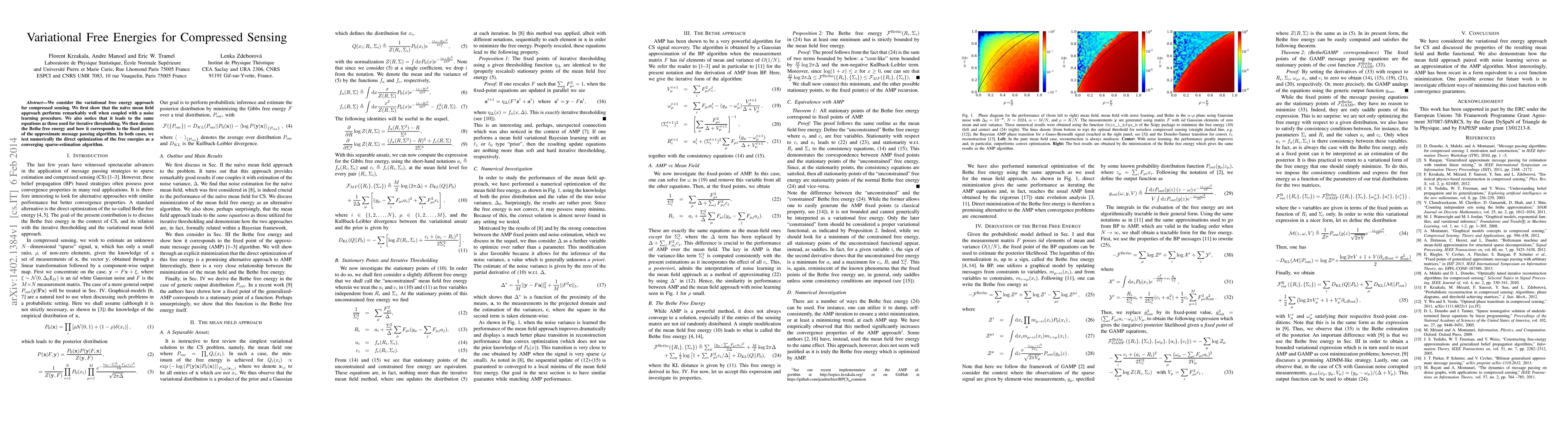 Researchers found that a variational free energy approach for compressed sensing can outperform traditional methods, particularly when combined with noise learning. The method's success is attributed to its ability to optimize sparse estimation.