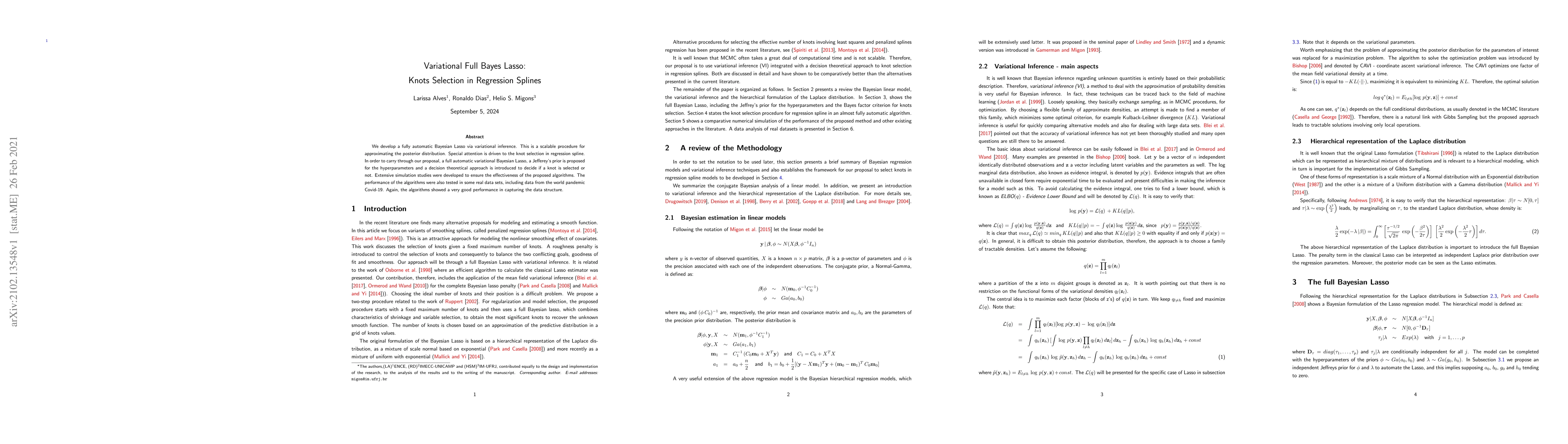 This paper proposes a fully automatic Bayesian Lasso using variational inference for knot selection in regression splines, employing a Jeffrey's prior for hyperparameters and a decision-theoretic approach for knot selection. Simulation studies and real data applications, including COVID-19 data, demonstrate the effectiveness of the method.