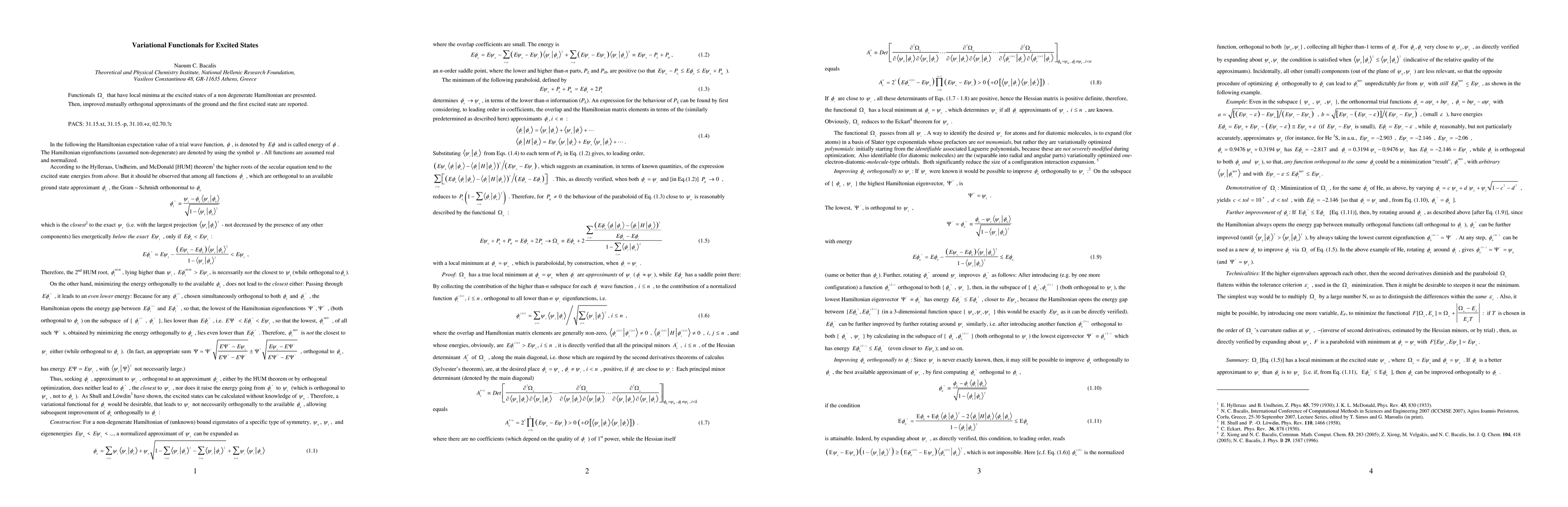 Functionals that have local minima at the excited states of a non degenerate Hamiltonian are presented. Then, improved mutually orthogonal approximants of the ground and the first excited state are reported.