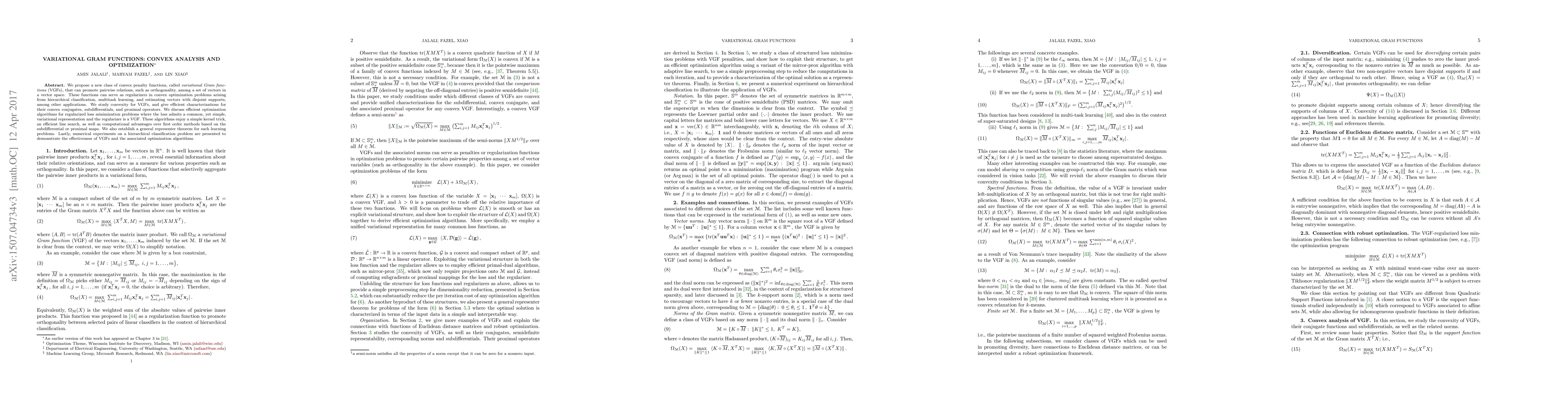 This paper introduces variational Gram functions (VGFs) as a new class of convex penalty functions that promote pairwise relations among vectors, useful in hierarchical classification and multitask learning. The authors provide efficient characterizations and optimization algorithms for regularized loss minimization problems using VGFs, demonstrating computational advantages and effectiveness through numerical experiments.