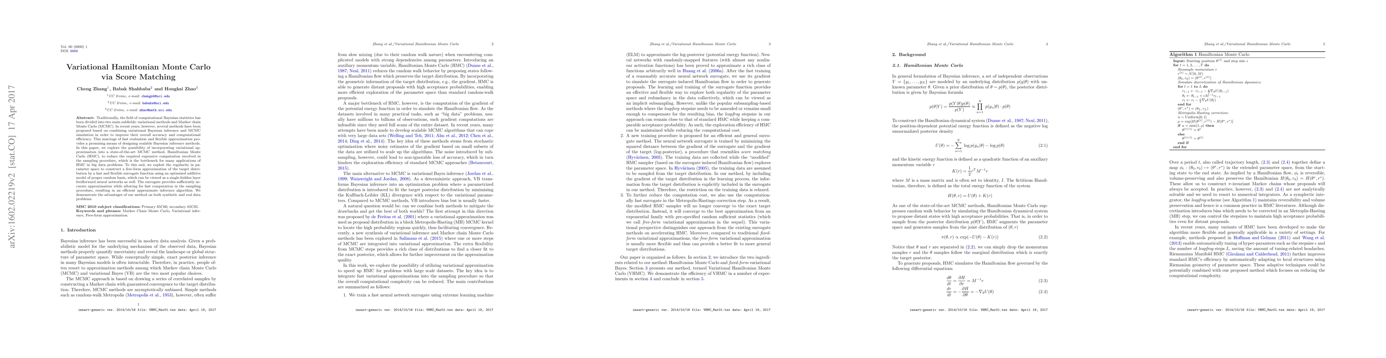 This paper proposes a variational Hamiltonian Monte Carlo method that uses score matching via neural networks to reduce gradient computation in HMC, enhancing efficiency for large-scale Bayesian inference. The method demonstrates improved performance on both synthetic and real data applications.