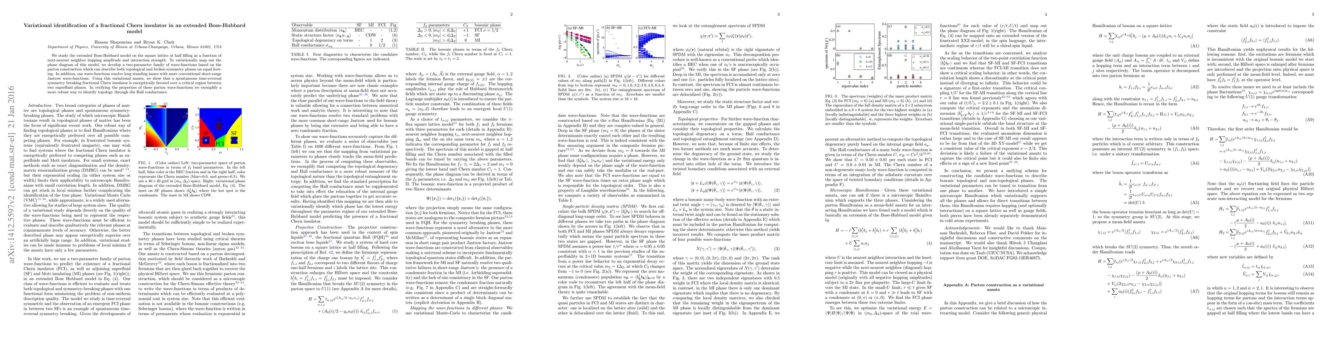 We study the extended Bose-Hubbard model on the square lattice at half filling as a function of next-nearest neighbor hopping amplitude and interaction strength. To variationally map out the phase diagram of this model, we develop a two-parameter family of wave-functions based on the parton construction which can describe both topological and broken symmetry phases on equal footing. In addition, our wave-functions resolve long standing issues with more conventional short-range Jastrow wave-functions. Using this variational ansatz, we show that a spontaneous time-reversal symmetry breaking fractional Chern insulator is energetically favored over a critical region between two superfluid phases. In verifying the properties of these parton wave-functions we exemplify a more robust way to identify topology through the Hall conductance.
