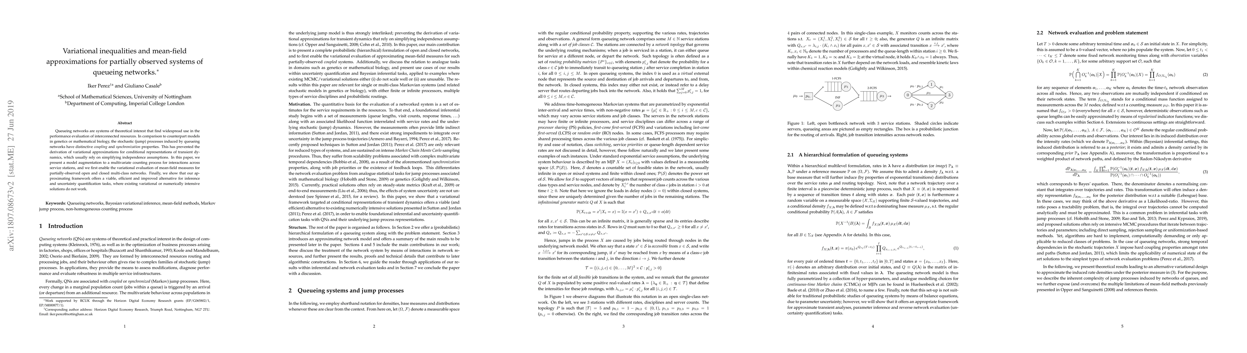 Queueing networks are systems of theoretical interest that find widespread use in the performance evaluation of interconnected resources. In comparison to counterpart models in genetics or mathematical biology, the stochastic (jump) processes induced by queueing networks have distinctive coupling and synchronization properties. This has prevented the derivation of variational approximations for conditional representations of transient dynamics, which rely on simplifying independence assumptions. Here, we present a model augmentation to a multivariate counting process for interactions across service stations, and we enable the variational evaluation of mean-field measures for partially-observed multi-class networks. We also show that our framework offers an efficient and improved alternative for inference tasks, where existing variational or numerically intensive solutions do not work.