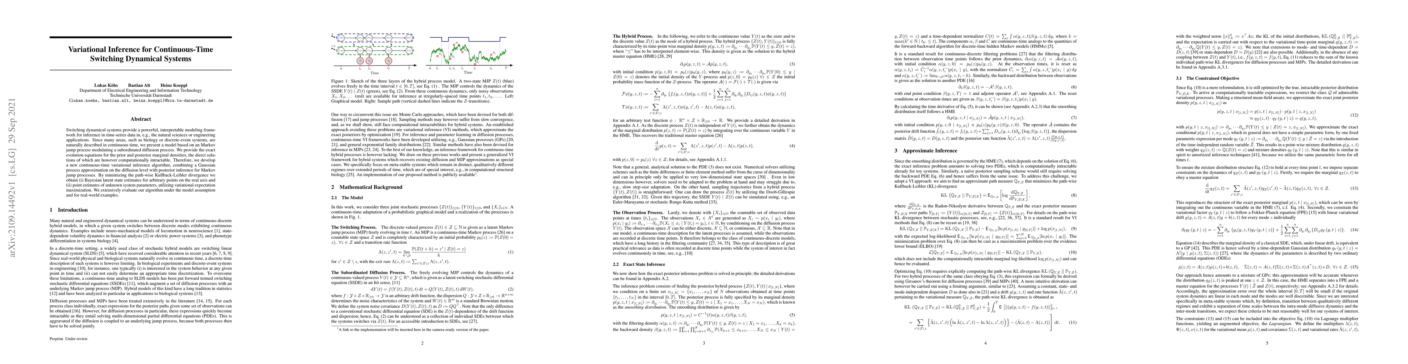 This paper introduces a continuous-time variational inference algorithm for switching dynamical systems, combining Gaussian process approximations with Markov jump processes. The method provides Bayesian latent state estimates and parameter point estimates, evaluated through both synthetic and real-world data.