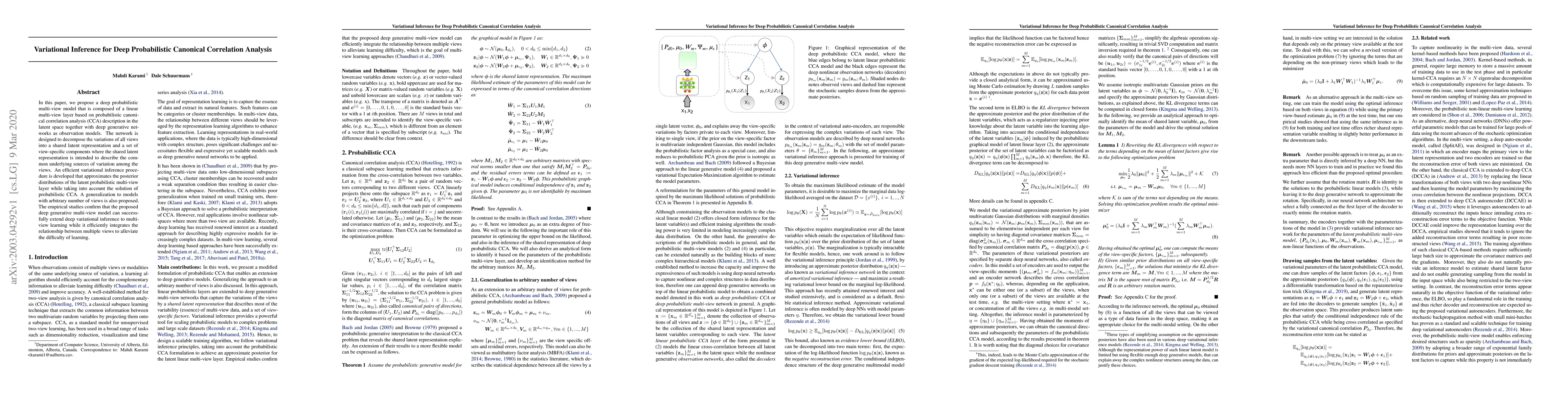 This paper introduces a deep probabilistic multi-view model combining variational inference with probabilistic canonical correlation analysis, aiming to decompose variations across views into shared and view-specific components. The model employs variational inference to approximate posterior distributions, enhancing multi-view learning by integrating relationships between different data views.