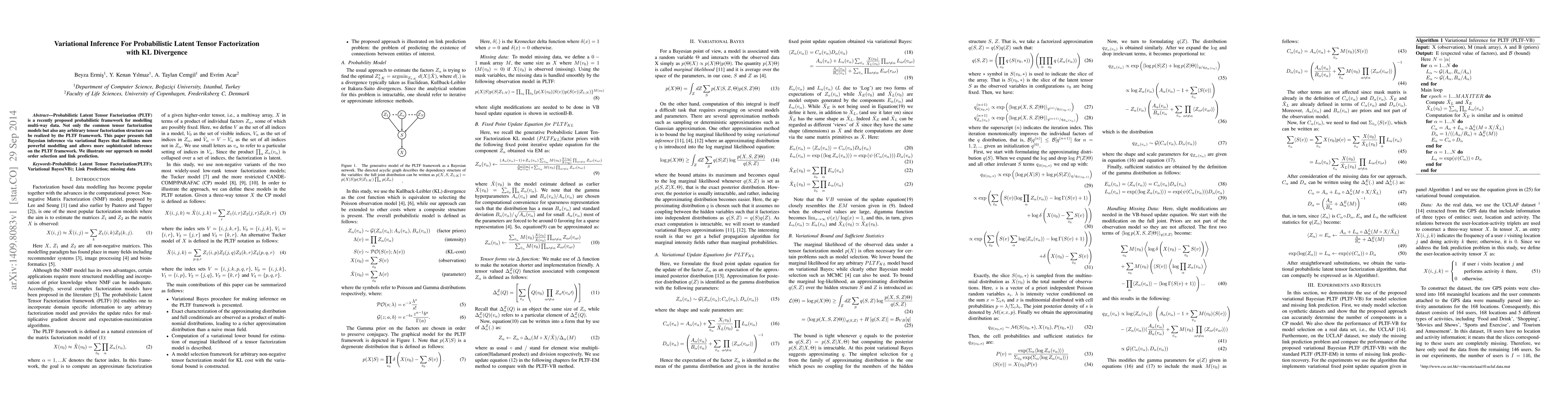 This paper introduces variational inference for Probabilistic Latent Tensor Factorization (PLTF) using KL divergence, enabling powerful modelling and sophisticated inference, demonstrated through model order selection and link prediction.