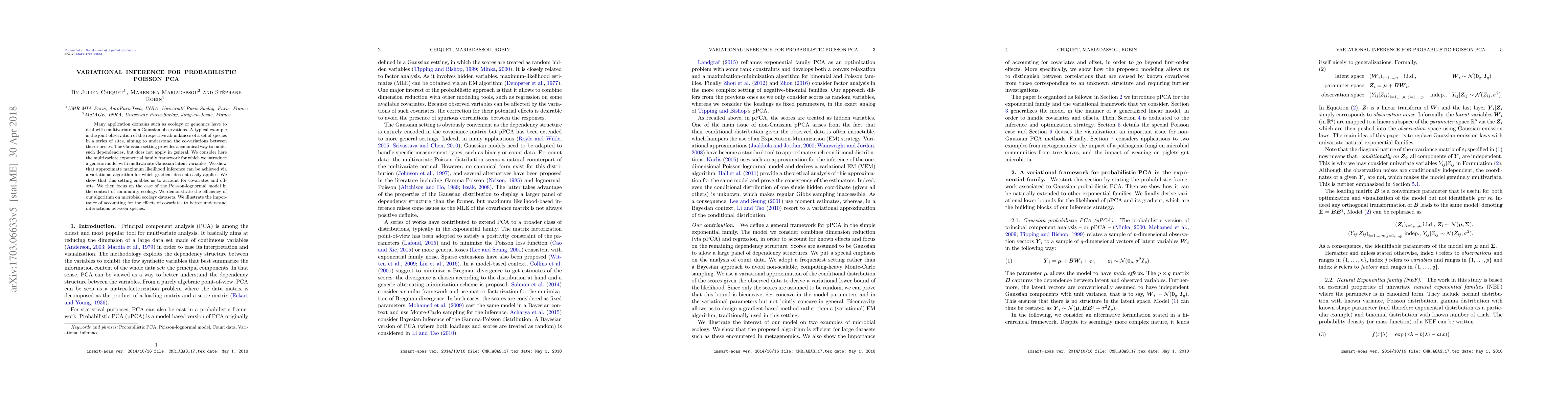 Many application domains such as ecology or genomics have to deal with multivariate non Gaussian observations. A typical example is the joint observation of the respective abundances of a set of species in a series of sites, aiming to understand the co-variations between these species. The Gaussian setting provides a canonical way to model such dependencies, but does not apply in general. We consider here the multivariate exponential family framework for which we introduce a generic model with multivariate Gaussian latent variables. We show that approximate maximum likelihood inference can be achieved via a variational algorithm for which gradient descent easily applies. We show that this setting enables us to account for covariates and offsets. We then focus on the case of the Poisson-lognormal model in the context of community ecology. We demonstrate the efficiency of our algorithm on microbial ecology datasets. We illustrate the importance of accounting for the effects of covariates to better understand interactions between species.