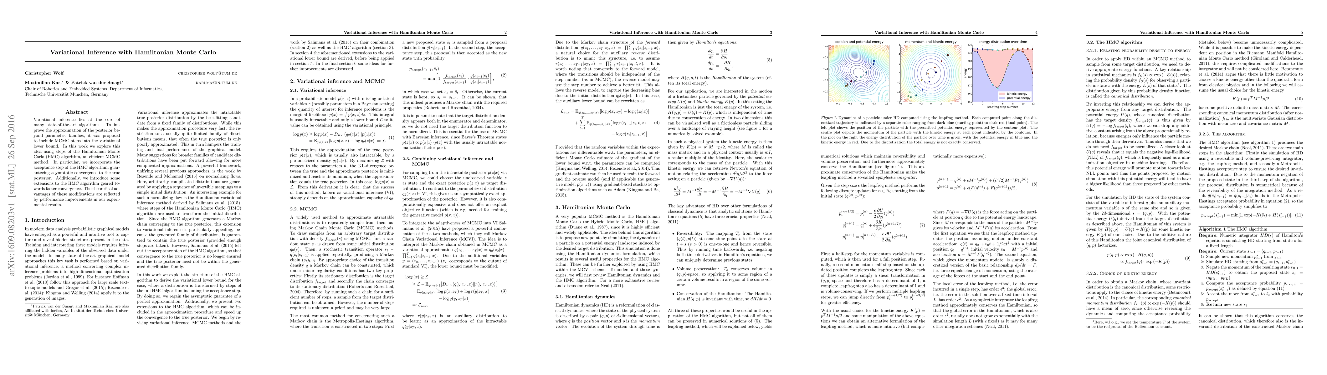 This paper proposes integrating Hamiltonian Monte Carlo (HMC) into variational inference to enhance posterior approximation, incorporating HMC's acceptance step for asymptotic convergence. Extensions to HMC are introduced for faster convergence, which are shown to improve performance in experiments.