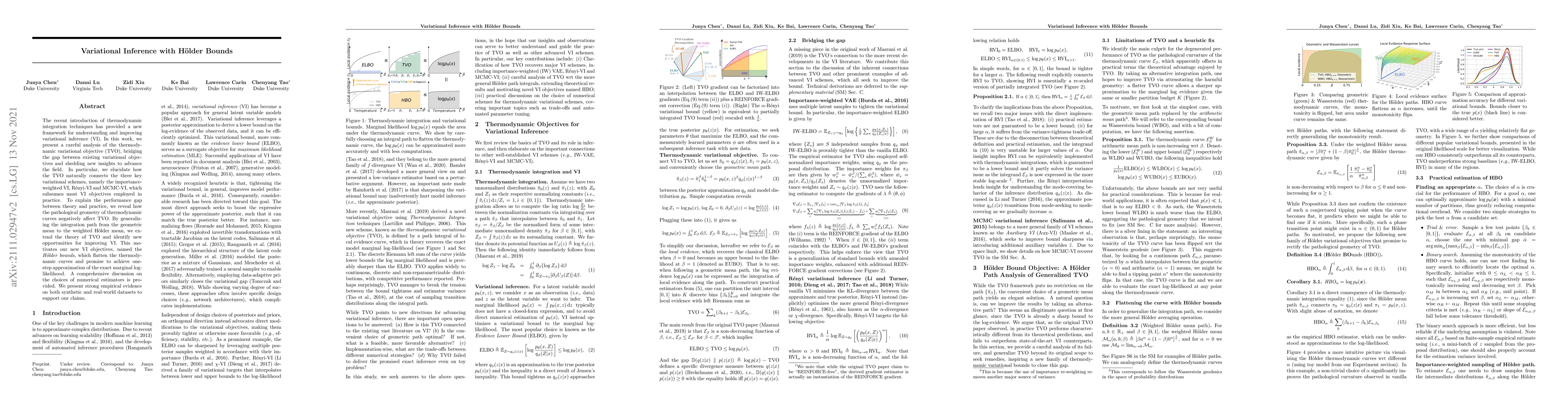 The recent introduction of thermodynamic integration techniques has provided a new framework for understanding and improving variational inference (VI). In this work, we present a careful analysis of the thermodynamic variational objective (TVO), bridging the gap between existing variational objectives and shedding new insights to advance the field. In particular, we elucidate how the TVO naturally connects the three key variational schemes, namely the importance-weighted VI, Renyi-VI, and MCMC-VI, which subsumes most VI objectives employed in practice. To explain the performance gap between theory and practice, we reveal how the pathological geometry of thermodynamic curves negatively affects TVO. By generalizing the integration path from the geometric mean to the weighted Holder mean, we extend the theory of TVO and identify new opportunities for improving VI. This motivates our new VI objectives, named the Holder bounds, which flatten the thermodynamic curves and promise to achieve a one-step approximation of the exact marginal log-likelihood. A comprehensive discussion on the choices of numerical estimators is provided. We present strong empirical evidence on both synthetic and real-world datasets to support our claims.