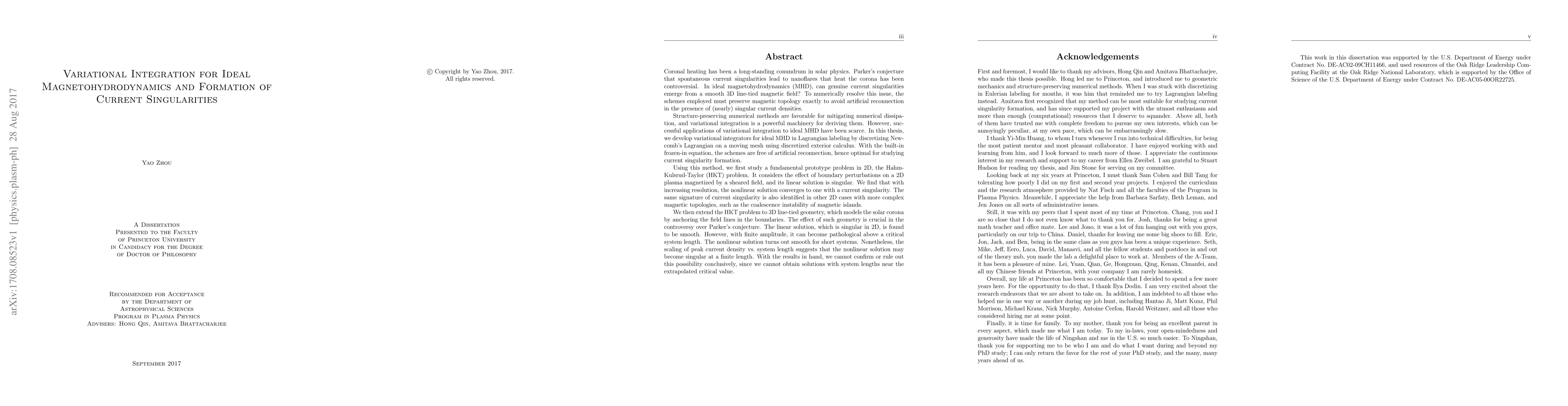 Coronal heating has been a long-standing conundrum in solar physics. Parker's conjecture that spontaneous current singularities lead to nanoflares that heat the corona has been controversial. In ideal magnetohydrodynamics (MHD), can genuine current singularities emerge from a smooth 3D line-tied magnetic field? To numerically resolve this issue, the schemes employed must preserve magnetic topology exactly to avoid artificial reconnection in the presence of singular current densities. Structure-preserving numerical methods are favorable for mitigating numerical dissipation, and variational integration is a powerful machinery for deriving them. In this thesis, we develop variational integrators for ideal MHD in Lagrangian labeling by discretizing Newcomb's Lagrangian on a moving mesh using discretized exterior calculus. With the built-in frozen-in equation, the schemes are free of artificial reconnection, hence optimal for studying current singularity formation. Using this method, we first study a fundamental prototype problem in 2D, the Hahm-Kulsrud-Taylor (HKT) problem. It considers the effect of boundary perturbations on a 2D plasma magnetized by a sheared field, and its linear solution is singular. We find that with increasing resolution, the nonlinear solution converges to one with a current singularity. We then extend the HKT problem to 3D line-tied geometry, which models the solar corona by anchoring the field lines in the boundaries. The linear solution, which is singular in 2D, is found to be smooth. The nonlinear solution turns out smooth for short systems. Nonetheless, the scaling of peak current density vs. system length suggests that the nonlinear solution may become singular at a finite length. With the results in hand, we cannot confirm or rule out this possibility conclusively, since we cannot obtain solutions with system lengths near the extrapolated critical value.