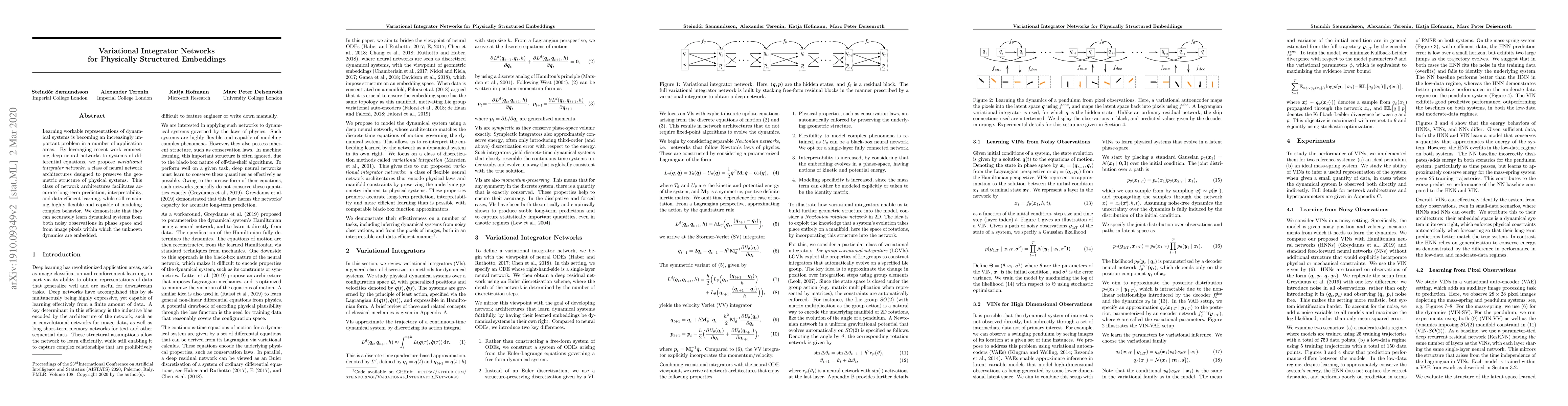 The paper introduces Variational Integrator Networks, a novel neural network architecture that preserves the geometric structure of physical systems. These networks enable accurate long-term predictions, interpretability, and efficient learning from limited data, while modeling complex behaviors. They successfully learn dynamical systems from noisy phase space observations and image pixels containing unknown dynamics.
