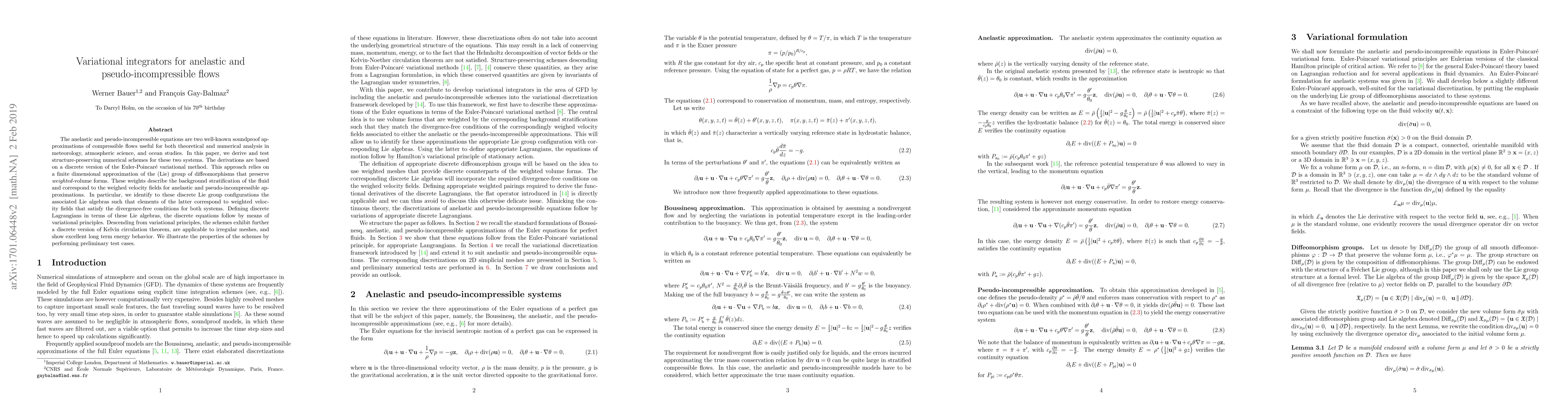 This paper develops structure-preserving numerical schemes for anelastic and pseudo-incompressible flow models using variational integrators derived from the Euler-Poincaré method. The schemes exhibit long-term energy behavior and apply to irregular meshes, as demonstrated by preliminary tests.