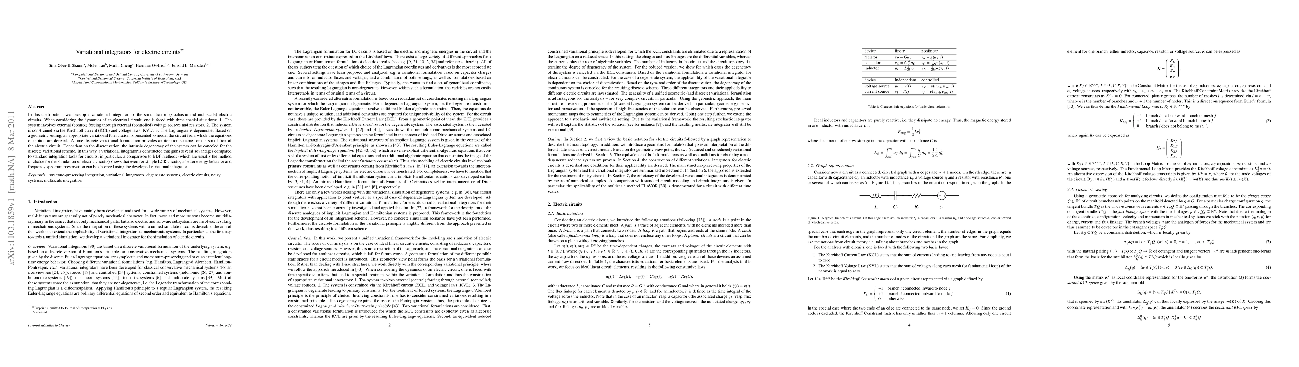 A new method for simulating electric circuits using variational integrators is presented, offering improved energy behavior and frequency spectrum preservation compared to traditional methods.