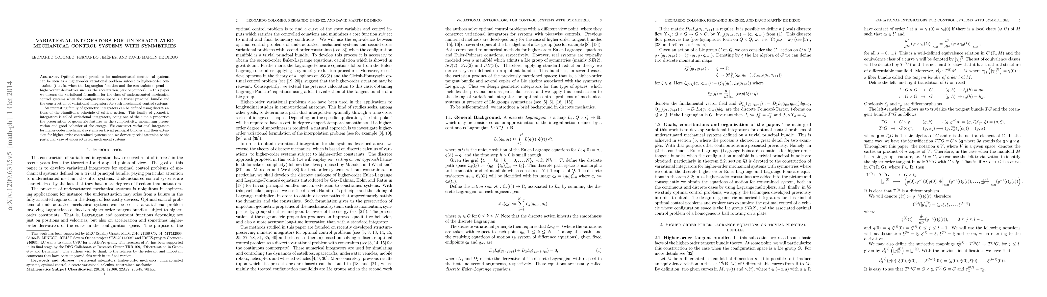 This paper develops variational integrators for underactuated mechanical systems, focusing on systems with higher-order constraints and symmetries. The authors construct these integrators, which preserve important geometric properties, to accurately simulate such complex dynamical systems.