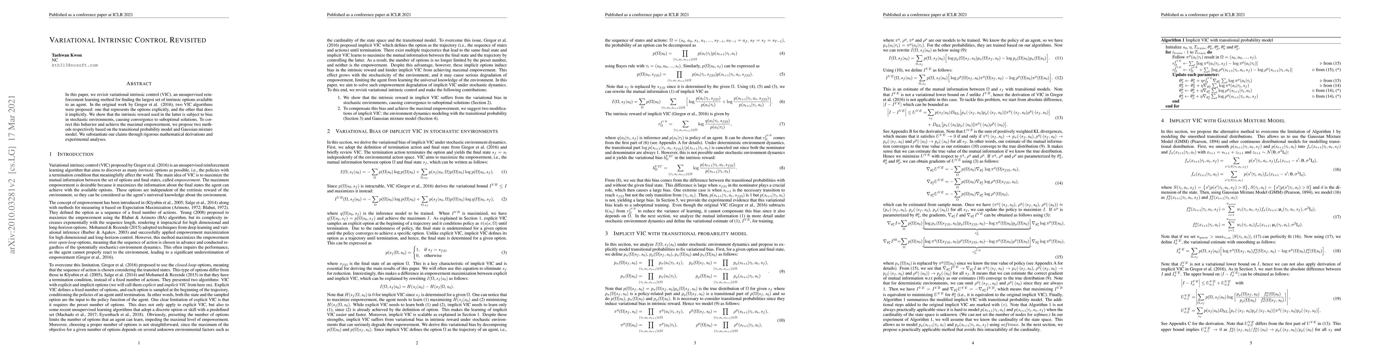 This paper revisits variational intrinsic control (VIC) to address bias in the implicit algorithm's intrinsic reward, proposing two new methods based on transitional probability and Gaussian mixture models to achieve optimal empowerment. The improvements are validated through mathematical derivations and experimental analyses.