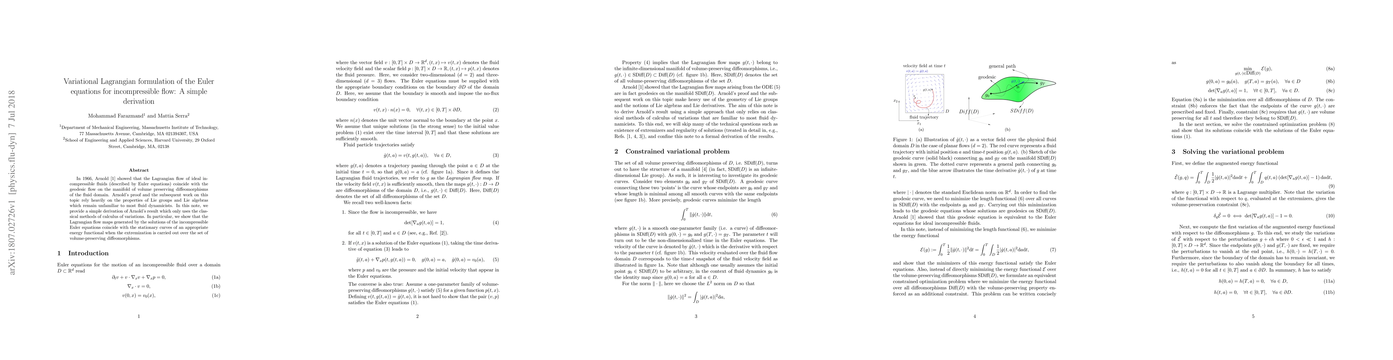 This paper presents a straightforward derivation of Arnold's theorem using variational methods, showing that the Lagrangian flow of incompressible Euler equations corresponds to the geodesic flow on the manifold of volume-preserving diffeomorphisms, without relying on complex Lie group theory.