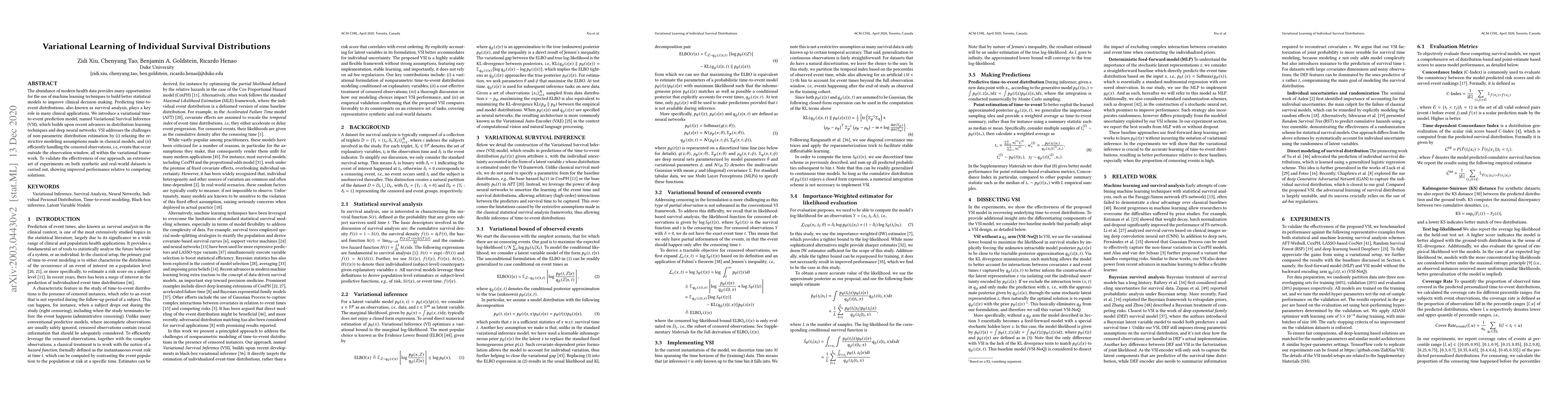 This research introduces Variational Survival Inference (VSI), a machine learning model that improves time-to-event predictions in clinical applications by relaxing modeling assumptions and efficiently handling censored observations. The approach outperforms competing solutions on synthetic and real-world datasets.