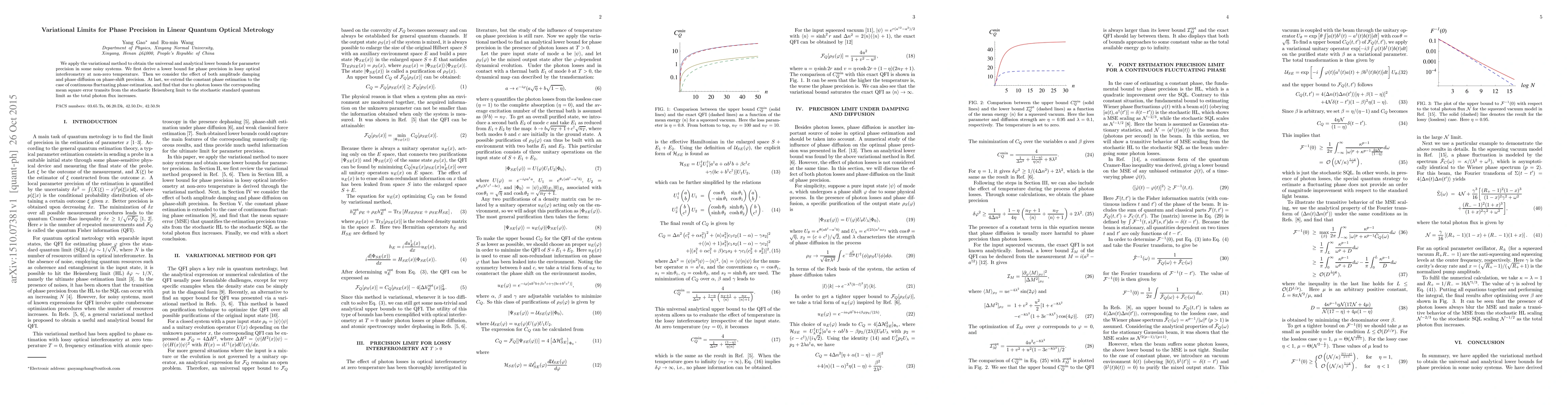 We apply the variational method to obtain the universal and analytical lower bounds for parameter precision in some noisy systems. We first derive a lower bound for phase precision in lossy optical interferometry at non-zero temperature. Then we consider the effect of both amplitude damping and phase diffusion on phase-shift precision. At last, we extend the constant phase estimation to the case of continuous fluctuating phase estimation, and find that due to photon losses the corresponding mean square error transits from the stochastic Heisenberg limit to the stochastic standard quantum limit as the total photon flux increases.