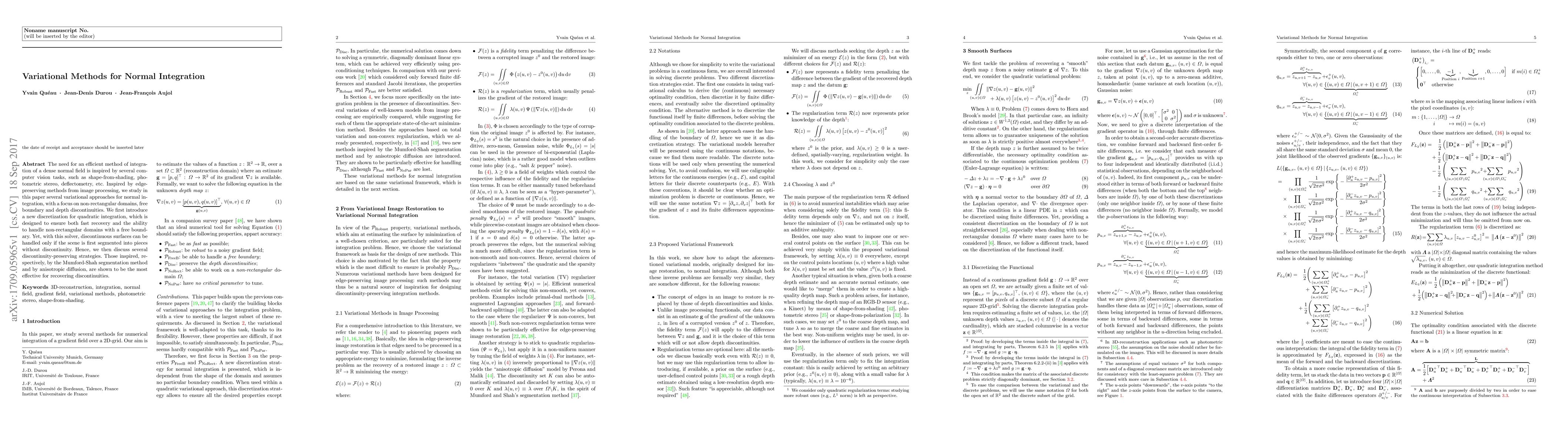 This paper presents variational methods for integrating dense normal fields, crucial for tasks like shape-from-shading and photometric stereo. It introduces a new quadratic integration discretization for non-rectangular domains with free boundaries, and explores strategies for handling depth discontinuities, finding Mumford-Shah and anisotropic diffusion-based methods most effective.