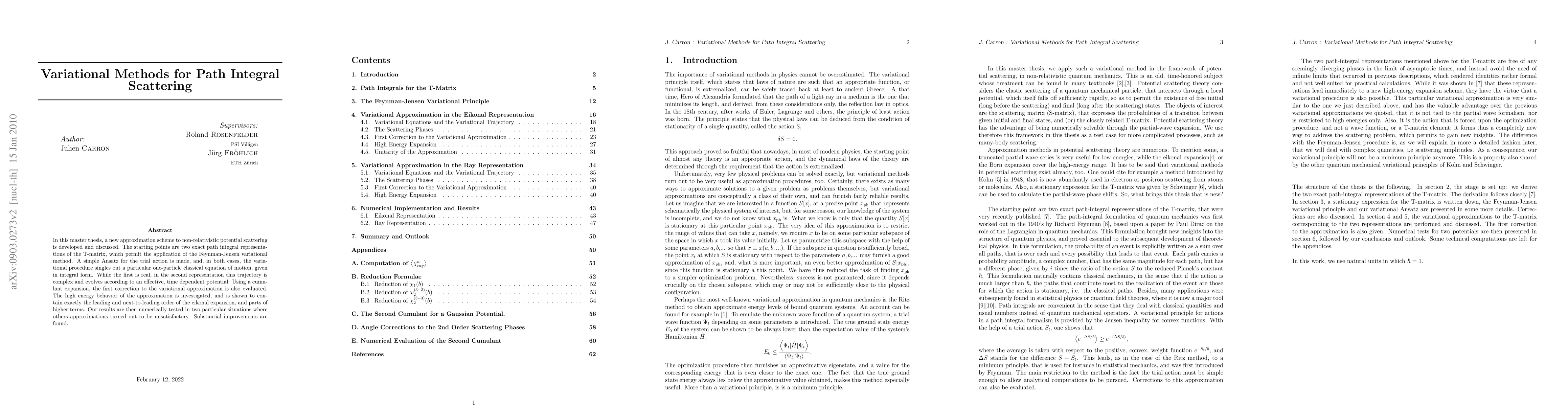 In this master thesis, a new approximation scheme to non-relativistic potential scattering is developed and discussed. The starting points are two exact path integral representations of the T-matrix, which permit the application of the Feynman-Jensen variational method. A simple Ansatz for the trial action is made, and, in both cases, the variational procedure singles out a particular one-particle classical equation of motion, given in integral form. While the first is real, in the second representation this trajectory is complex and evolves according to an effective, time dependent potential. Using a cumulant expansion, the first correction to the variational approximation is also evaluated. The high energy behavior of the approximation is investigated, and is shown to contain exactly the leading and next-to-leading order of the eikonal expansion, and parts of higher terms. Our results are then numerically tested in two particular situations where others approximations turned out to be unsatisfactory. Substantial improvements are found.