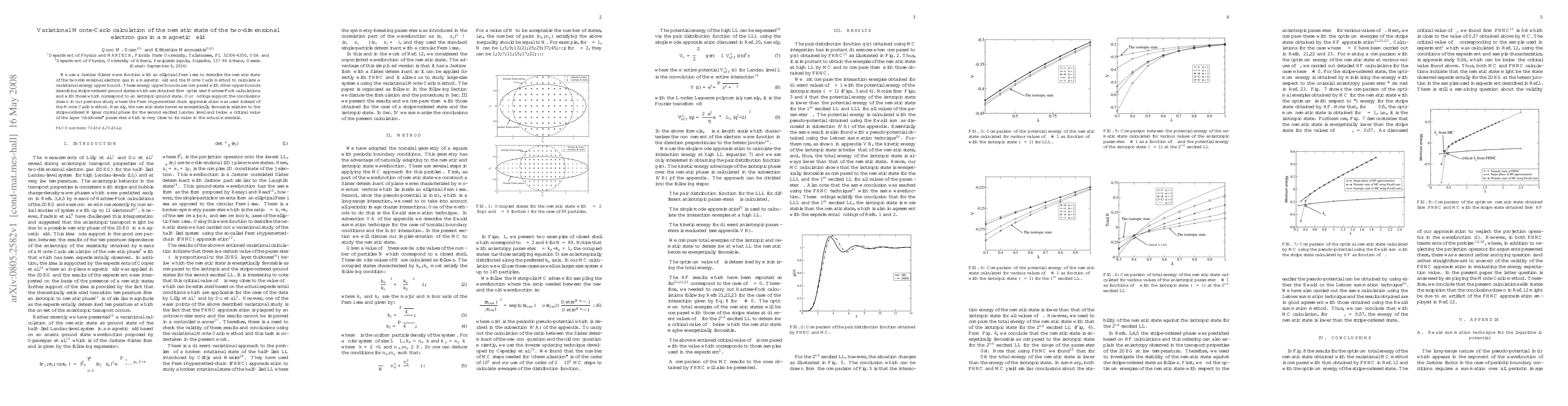 We use a Jastrow-Slater wave function with an elliptical Fermi sea to describe the nematic state of the two-dimensional electron gas in a magnetic field and the Monte Carlo method to calculate a variational energy upper bound. These energy upper bounds are compared with other upper bounds describing stripe-ordered ground states which are obtained from optimized Hartree-Fock calculations and with those which correspond to an isotropic ground state. Our findings support the conclusions drawn in our previous study where the Fermi-hypernetted chain approximation was used instead of the Monte Carlo method. Namely, the nematic state becomes energetically favorable relative to the stripe-ordered Wigner crystal phase for the second excited Landau level and below a critical value of the layer ``thickness'' parameter which is very close to its value in the actual materials.