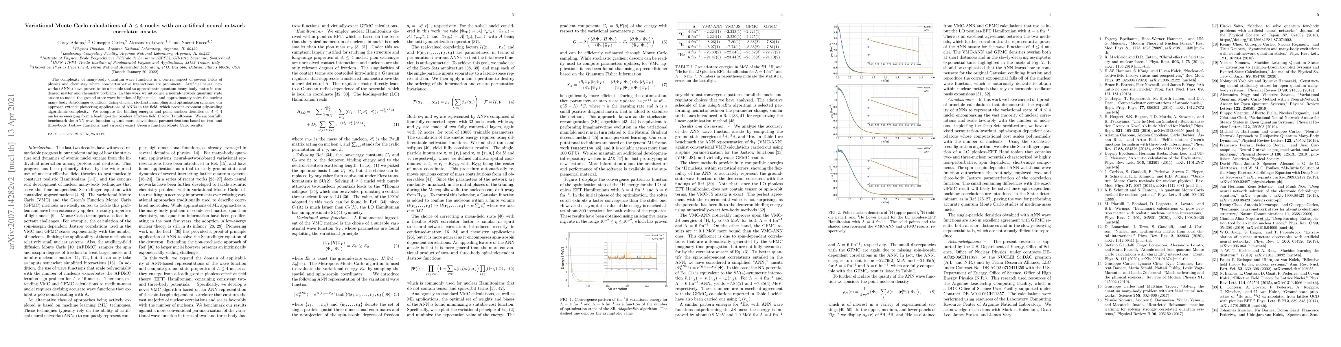 The complexity of many-body quantum wave functions is a central aspect of several fields of physics and chemistry where non-perturbative interactions are prominent. Artificial neural networks (ANNs) have proven to be a flexible tool to approximate quantum many-body states in condensed matter and chemistry problems. In this work we introduce a neural-network quantum state ansatz to model the ground-state wave function of light nuclei, and approximately solve the nuclear many-body Schr\"odinger equation. Using efficient stochastic sampling and optimization schemes, our approach extends pioneering applications of ANNs in the field, which present exponentially-scaling algorithmic complexity. We compute the binding energies and point-nucleon densities of $A\leq 4$ nuclei as emerging from a leading-order pionless effective field theory Hamiltonian. We successfully benchmark the ANN wave function against more conventional parametrizations based on two- and three-body Jastrow functions, and virtually-exact Green's function Monte Carlo results.