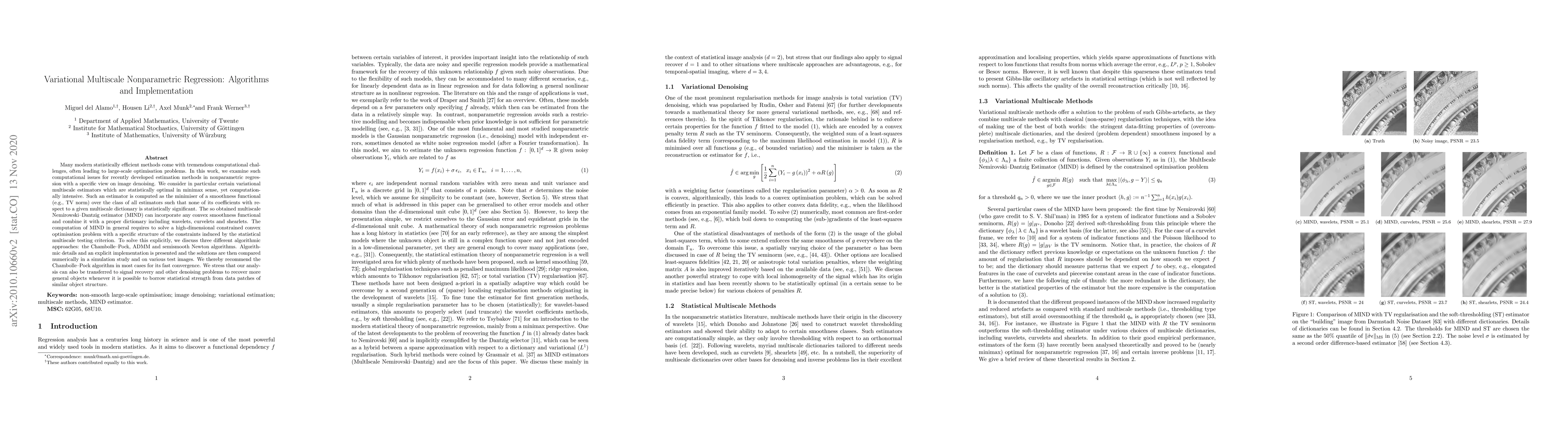 This paper investigates computational challenges in variational multiscale nonparametric regression, focusing on image denoising. It proposes the multiscale Nemirowski-Dantzig estimator (MIND) and discusses three optimization algorithms—Chambolle-Pock, ADMM, and semismooth Newton—to solve the associated high-dimensional optimization problem. The Chambolle-Pock algorithm is recommended for its fast convergence.