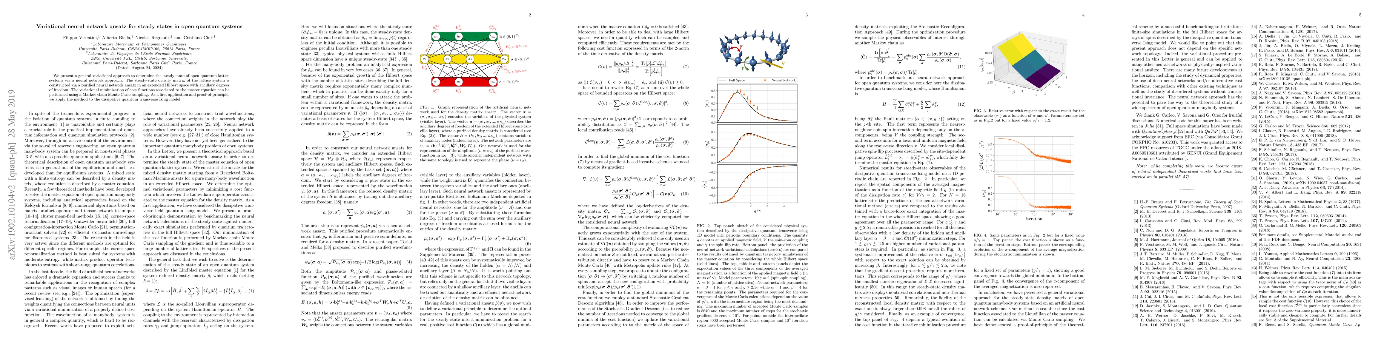 This paper introduces a variational neural network method to find steady states in open quantum systems, constructing the density matrix using a purified neural network ansatz. The method is demonstrated through the dissipative quantum transverse Ising model.