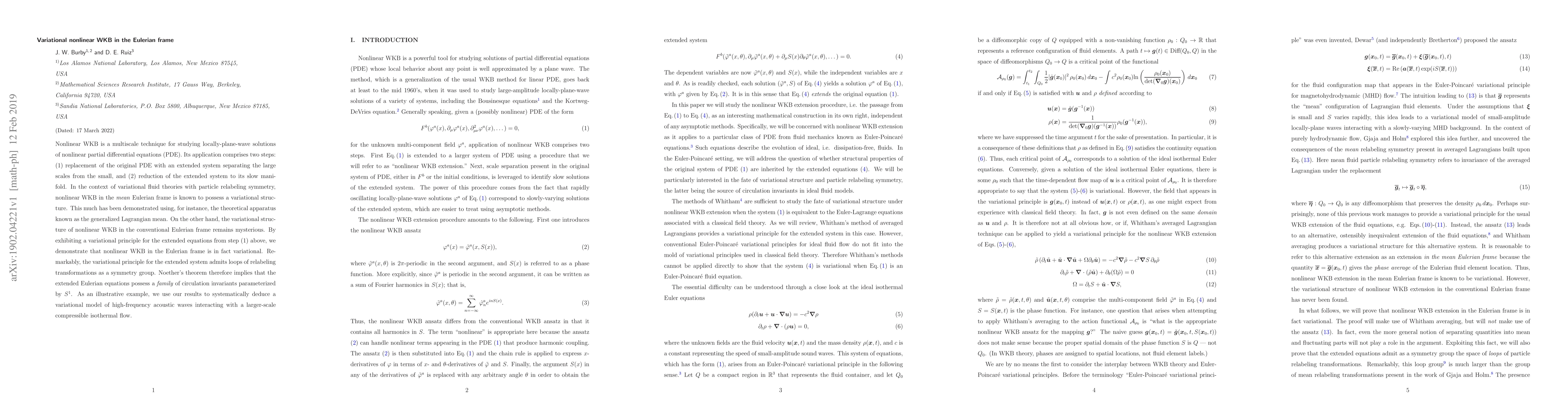 Researchers demonstrate that nonlinear WKB in the Eulerian frame has a variational structure, providing a new understanding of its application in fluid dynamics and acoustics.