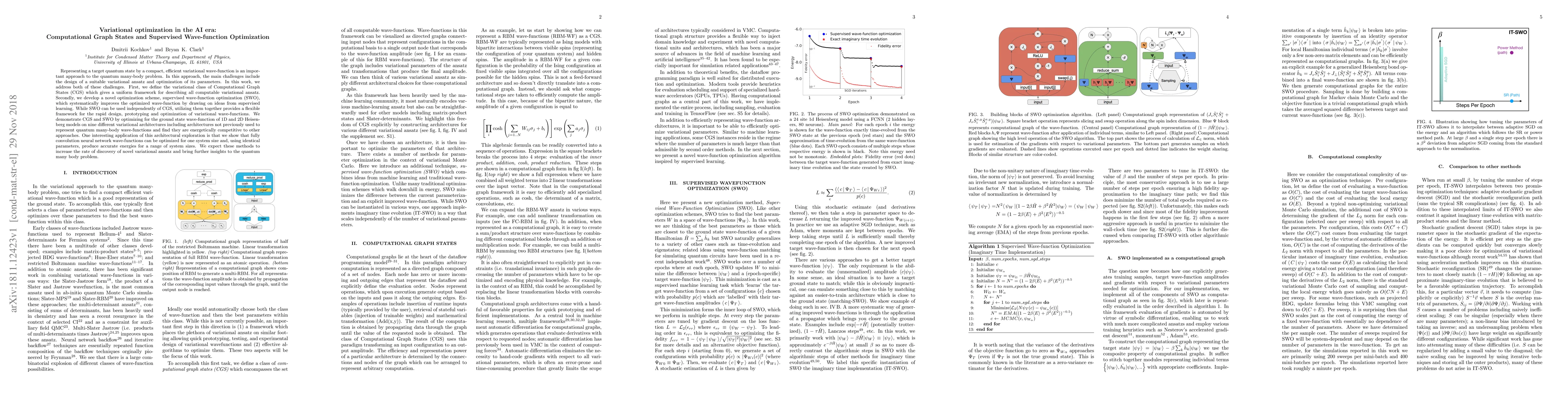 Representing a target quantum state by a compact, efficient variational wave-function is an important approach to the quantum many-body problem. In this approach, the main challenges include the design of a suitable variational ansatz and optimization of its parameters. In this work, we address both of these challenges. First, we define the variational class of Computational Graph States (CGS) which gives a uniform framework for describing all computable variational ansatz. Secondly, we develop a novel optimization scheme, supervised wave-function optimization (SWO), which systematically improves the optimized wave-function by drawing on ideas from supervised learning. While SWO can be used independently of CGS, utilizing them together provides a flexible framework for the rapid design, prototyping and optimization of variational wave-functions. We demonstrate CGS and SWO by optimizing for the ground state wave-function of 1D and 2D Heisenberg models on nine different variational architectures including architectures not previously used to represent quantum many-body wave-functions and find they are energetically competitive to other approaches. One interesting application of this architectural exploration is that we show that fully convolution neural network wave-functions can be optimized for one system size and, using identical parameters, produce accurate energies for a range of system sizes. We expect these methods to increase the rate of discovery of novel variational ansatz and bring further insights to the quantum many body problem.