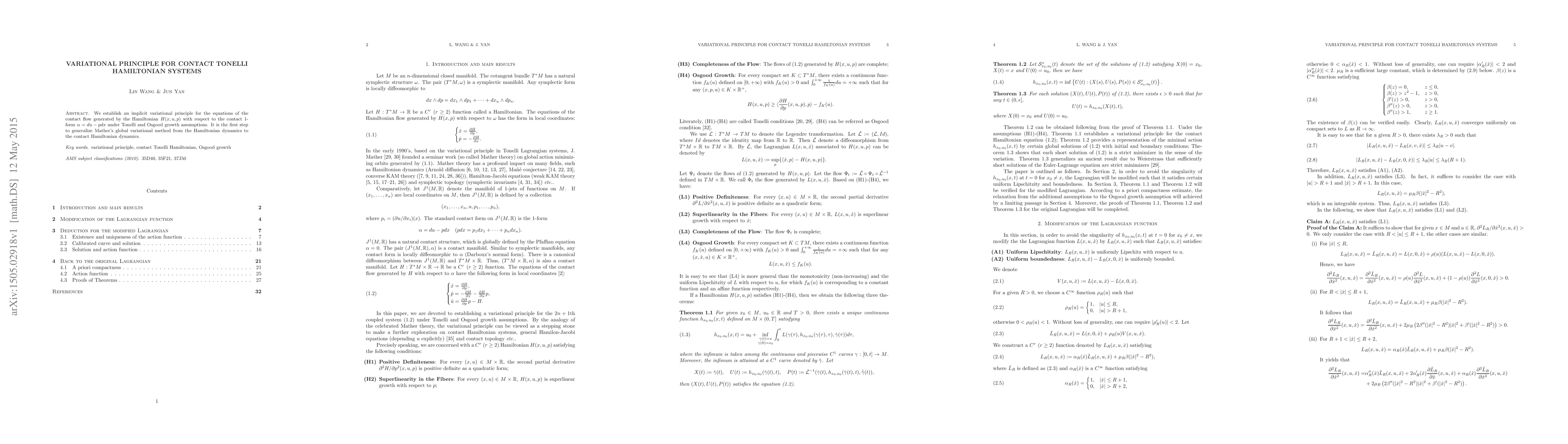 Researchers establish an implicit variational principle for contact Hamiltonian systems with Tonelli growth assumptions, aiming to generalize Mather's method from Hamiltonian to contact dynamics.