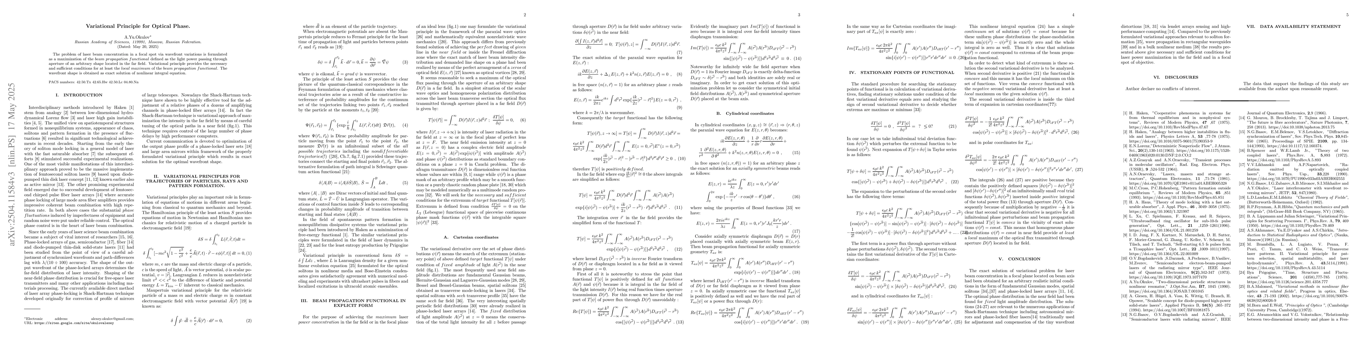 The paper presents a variational principle for optical phase that provides conditions for maximizing laser beam power in the far field, along with exact solutions for wavefront shapes.